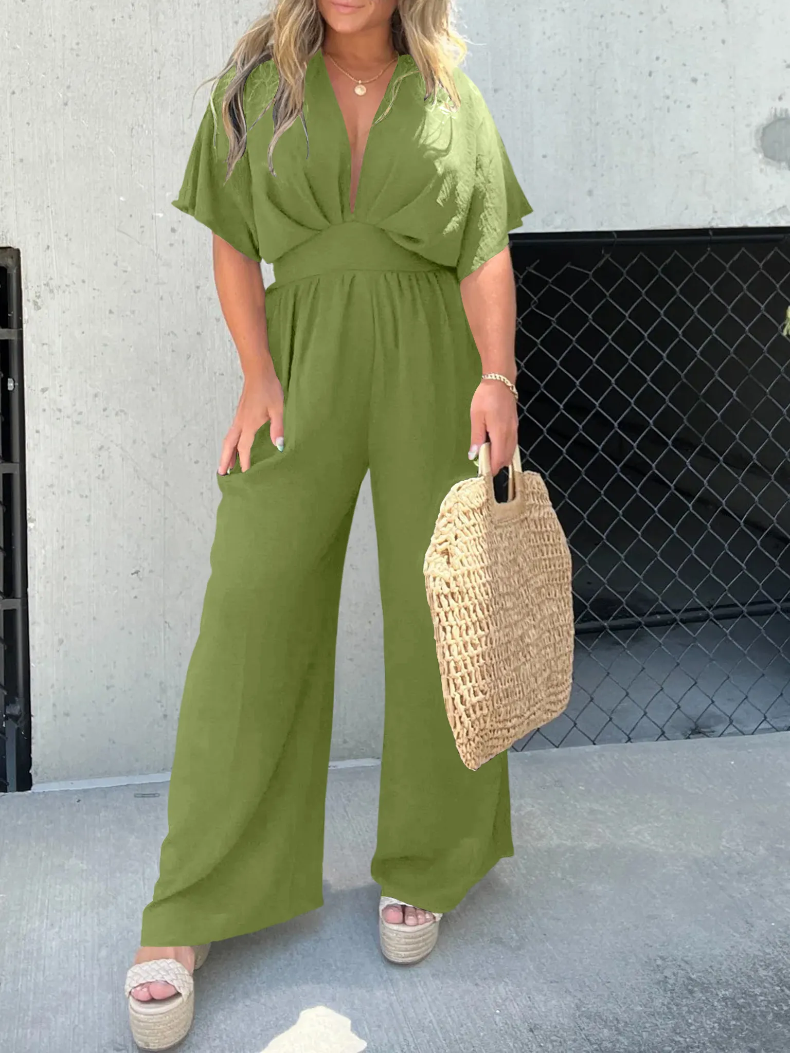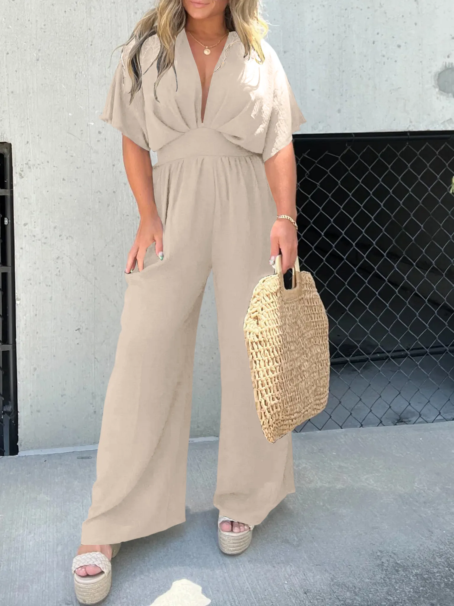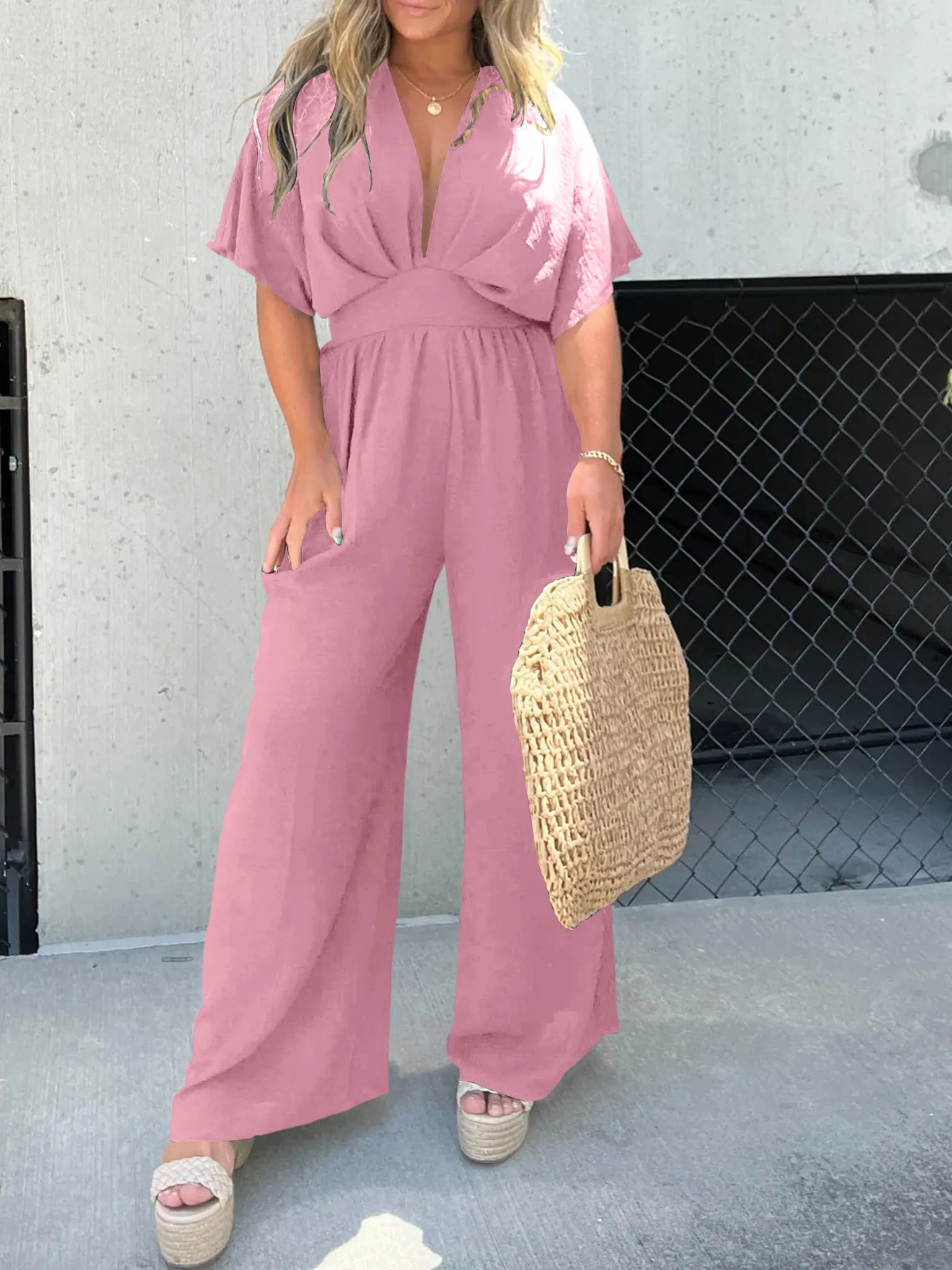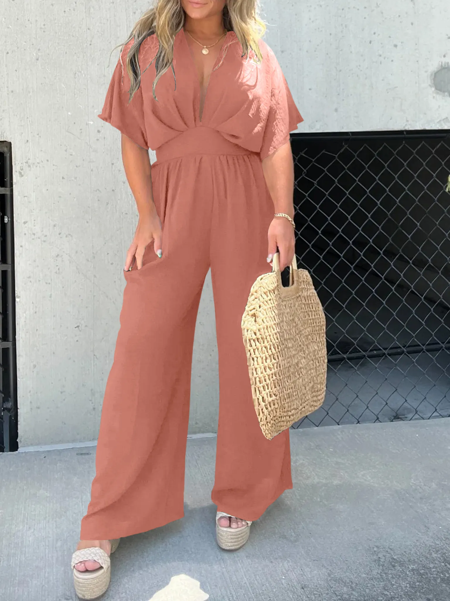 This Wide Leg Jumpsuit is sexy chic and energetic style. Flowy and comfy textured fabrication is soft and stretchy, attractive for summer! Once you’re in these, you’ll never, ever want to take them off.
