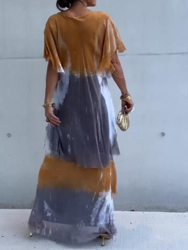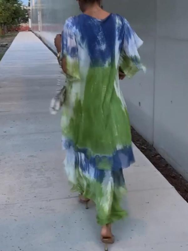 Elegant V-neck Fashion Printed Cake Long Dress