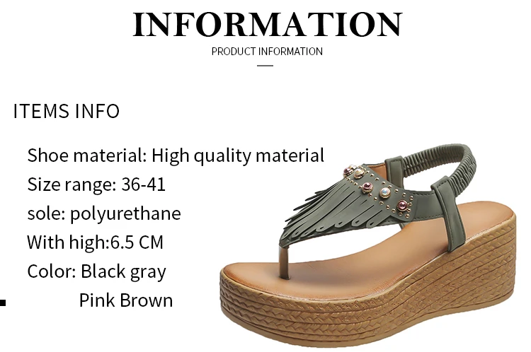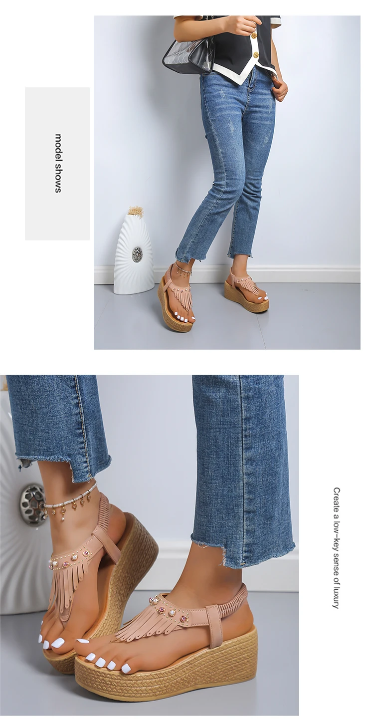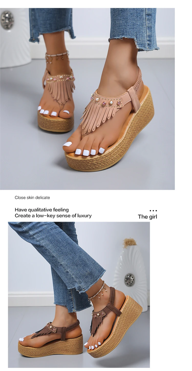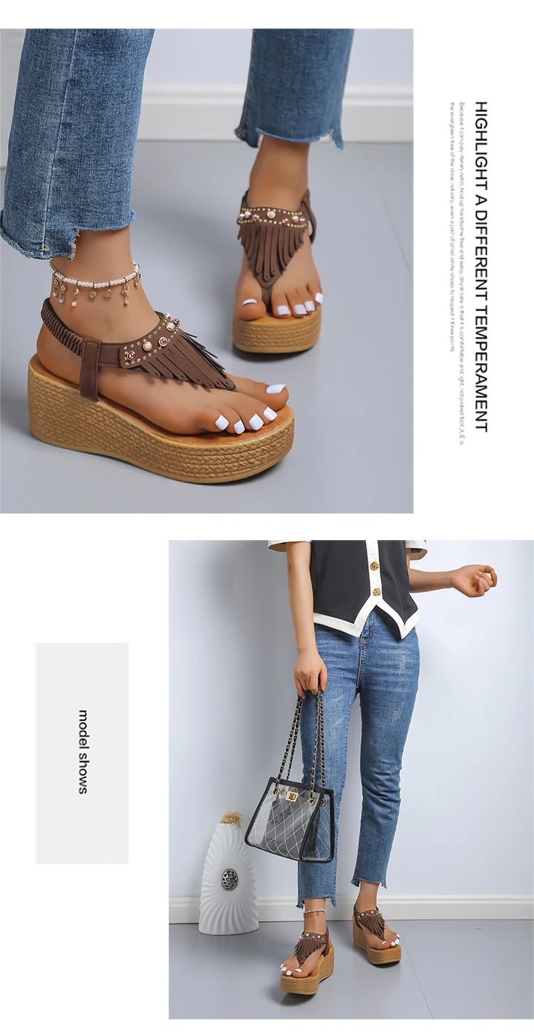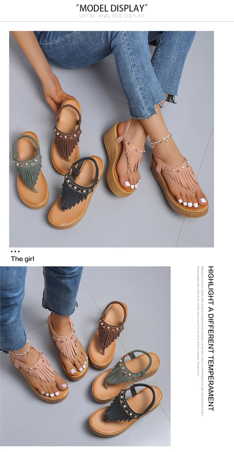 Fashion Tassel Flower Print Wedge Non-slip Casual Sandals