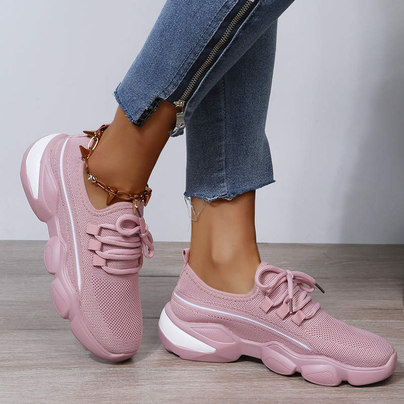 Fashionable Platform Solid Color Lace-Up Flyknit Casual Sneakers