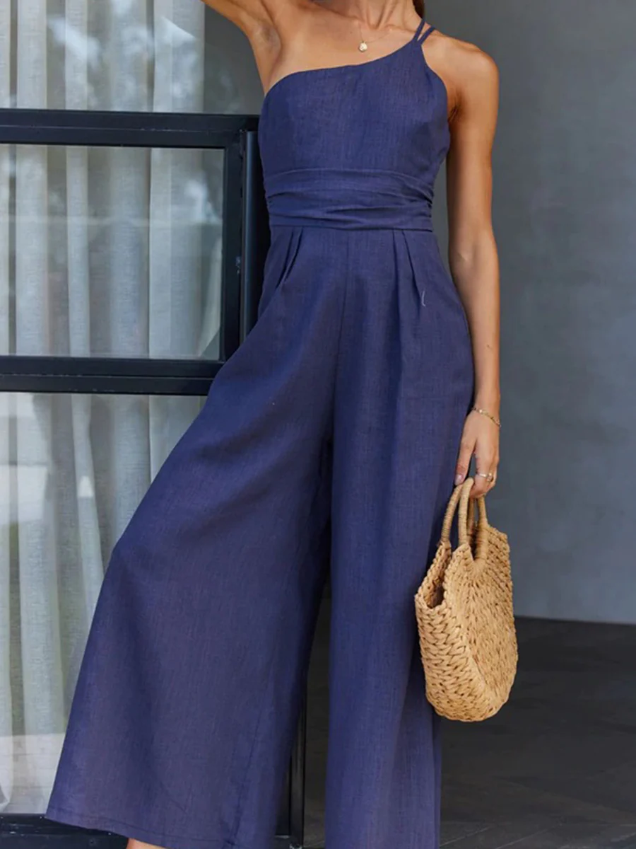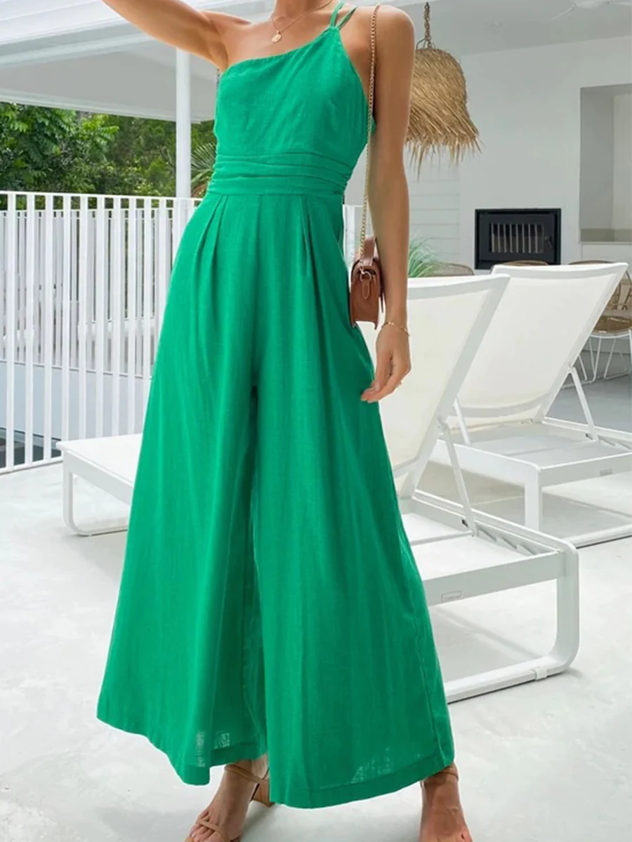 Linen Wide Leg Solid Casual Jumpsuit