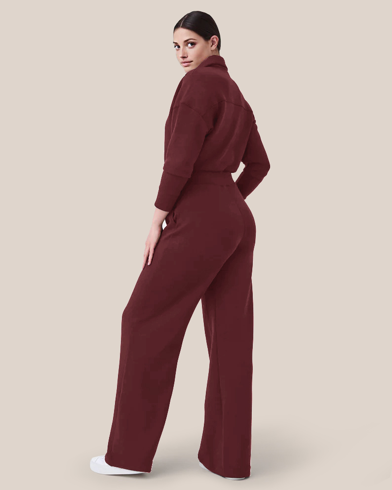 • Long sleeves and the wide leg design