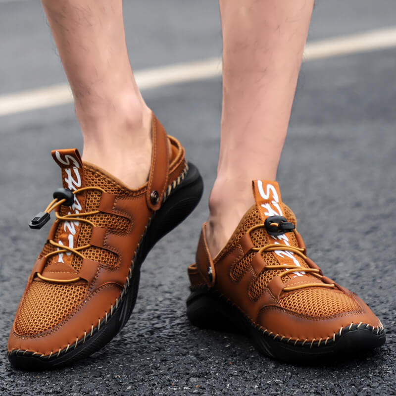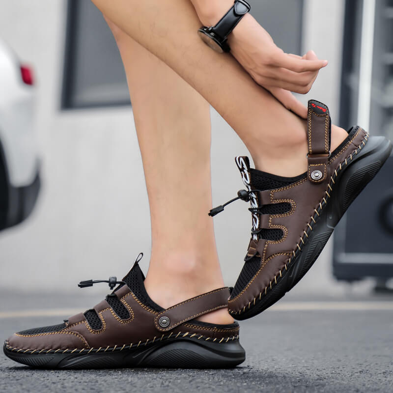 ZITTOR Men's Cowhide Outdoor Beach Mesh Sandals