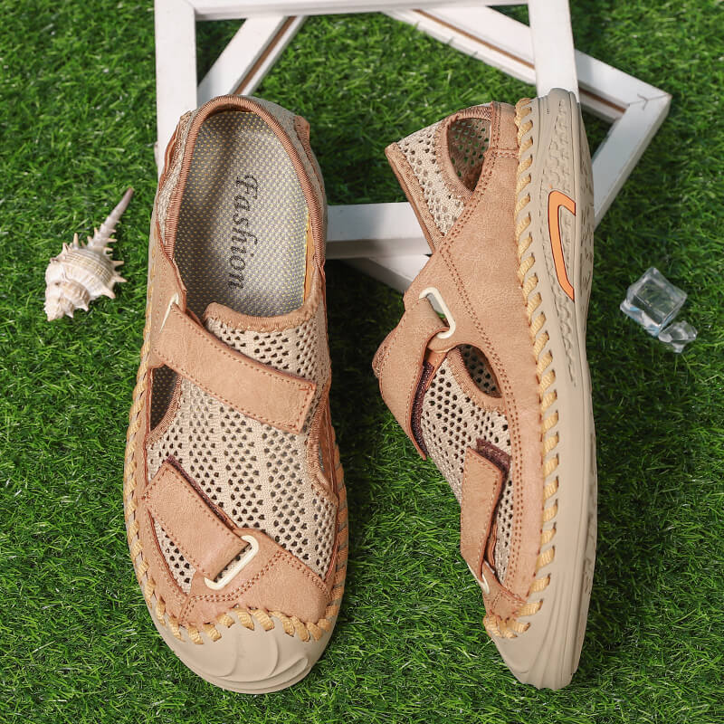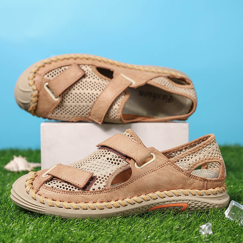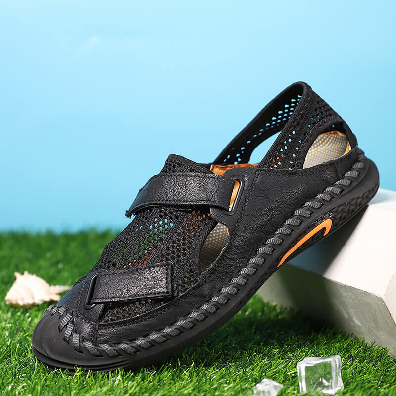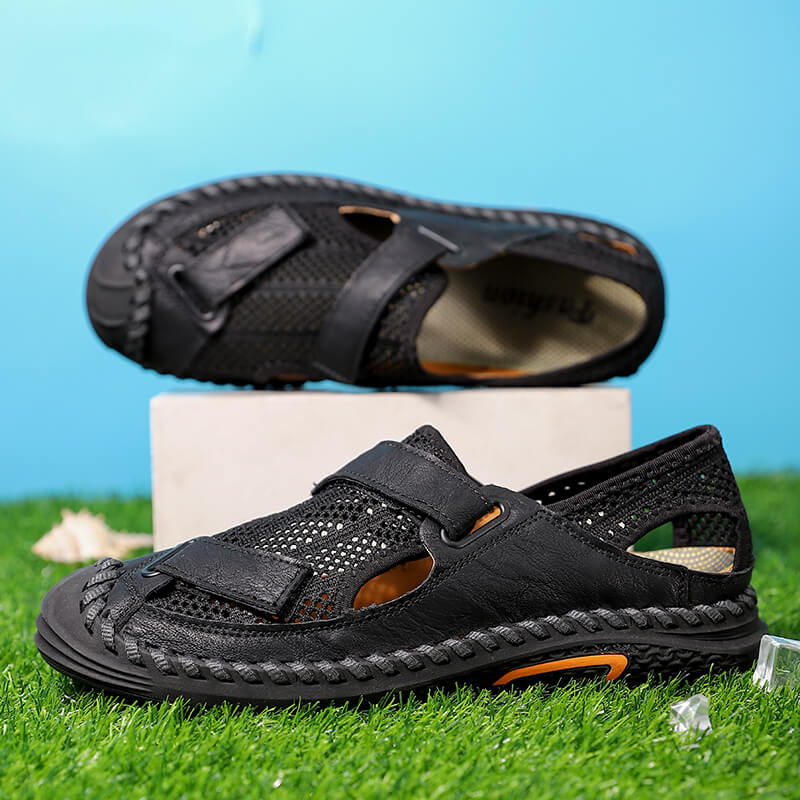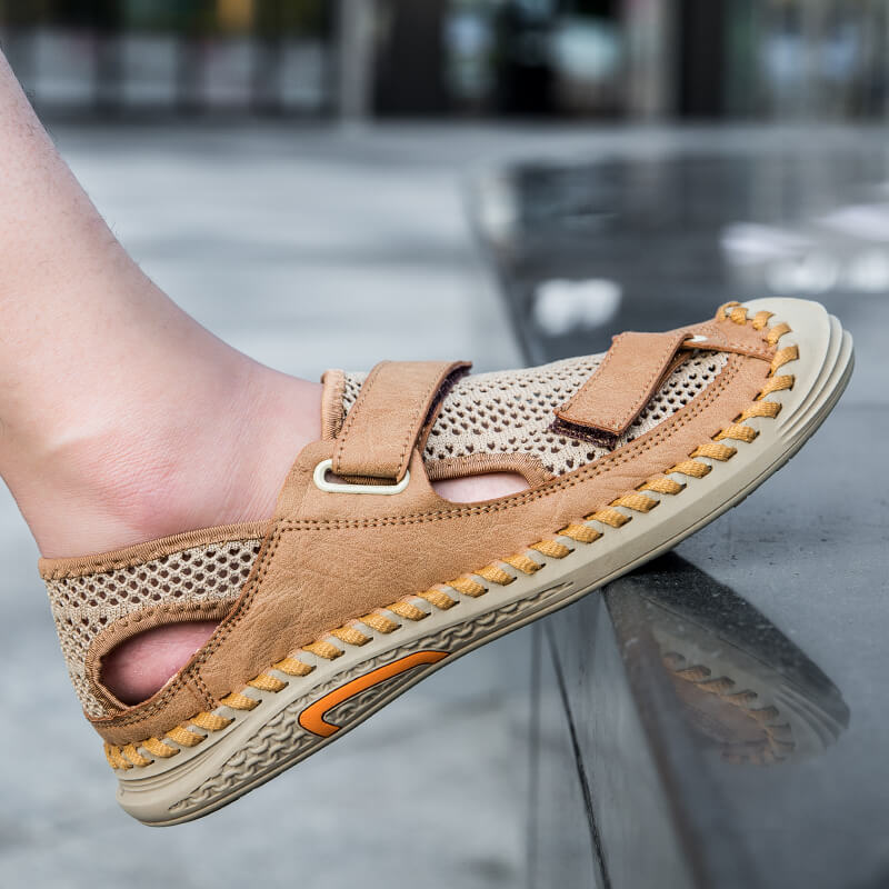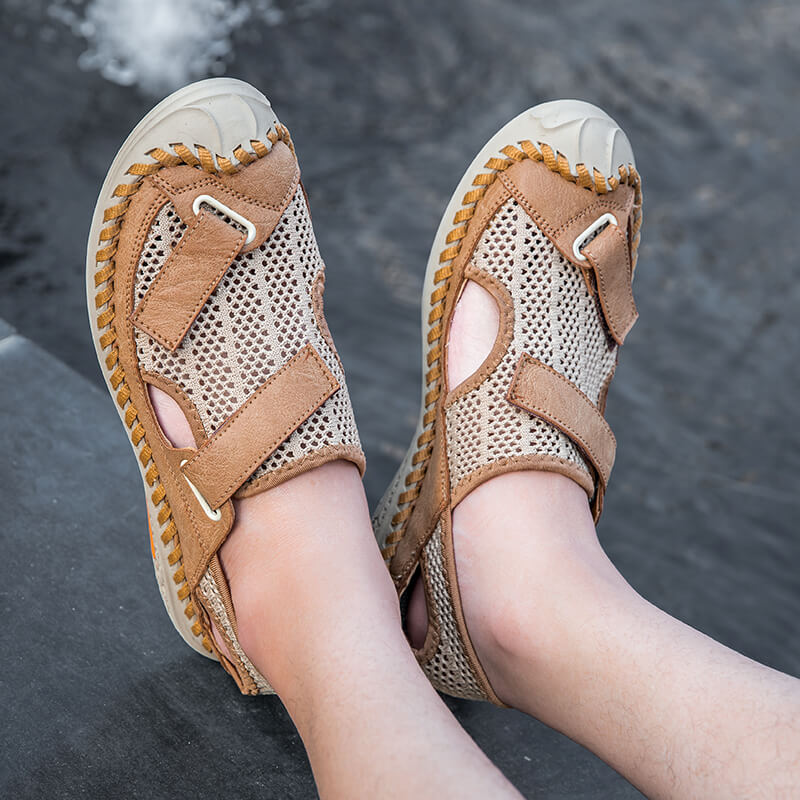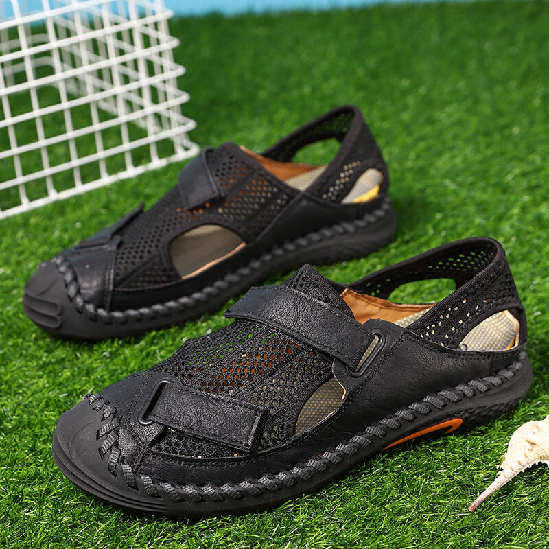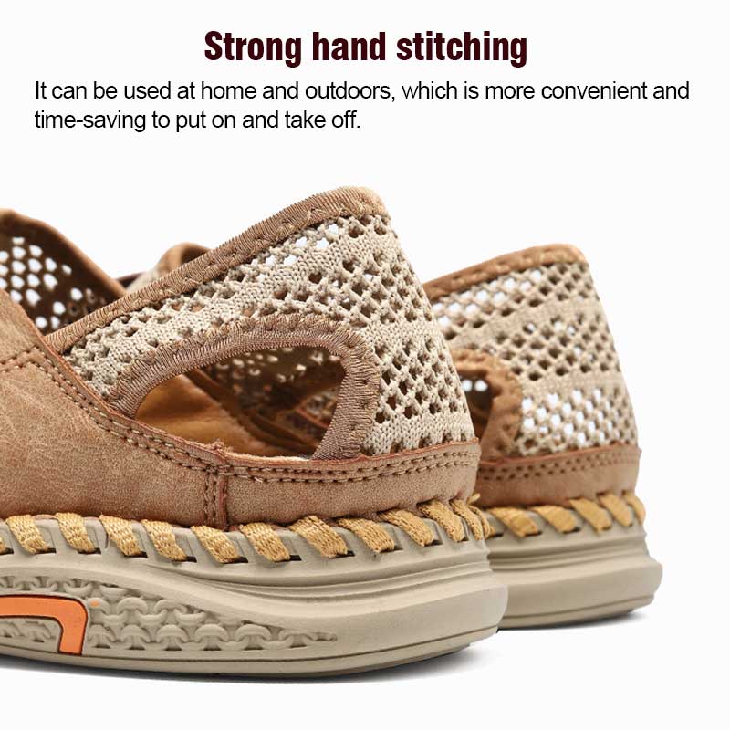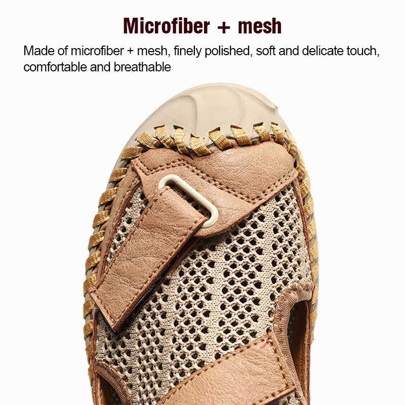 ??FRIENDLY:The mens sandals can be twistedmake you comfortable and relaxing.The closed toe design to a large extent protect you toe from hurtand the button make the leather sandals easy to put on and take off.