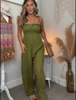 New Boho Smocked Bodice Tie Strap Jumpsuit