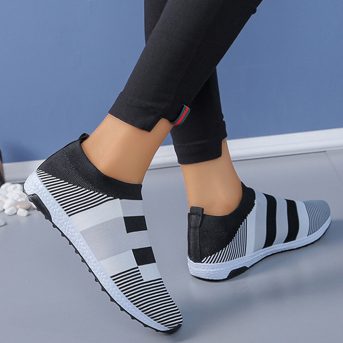 Plus Size Flyknit Round Toe Colorblock Everyday Casual Flat Sneakers