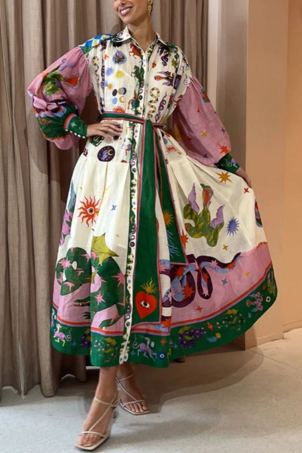 Fabric name: cotton polyesterPattern: animal patternStyle: cardiganSkirt length: mid-length skirtSkirt type: oversized swing skirtCollar type: POLO collarSleeve type: trumpet sleeveSleeve length: long sleeveWaist type: high waistSize: S-XLStyle type: literary retroPlacket: single-breasted and multi-buttonStyle: French styleSkirt Category: DressStyle type: sweet and fresh