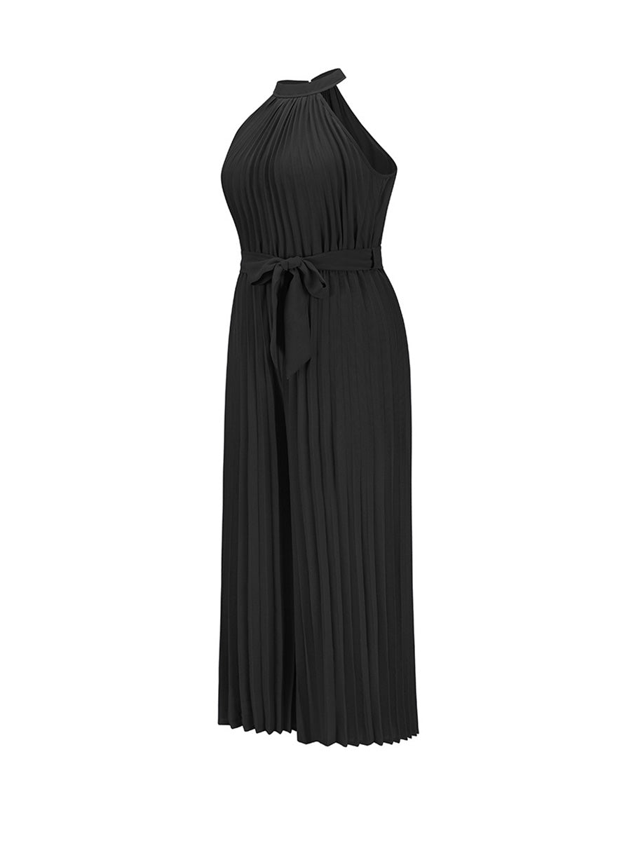 Pleated Hanging Neck Wide Leg Dressy Jumpsuits For Women