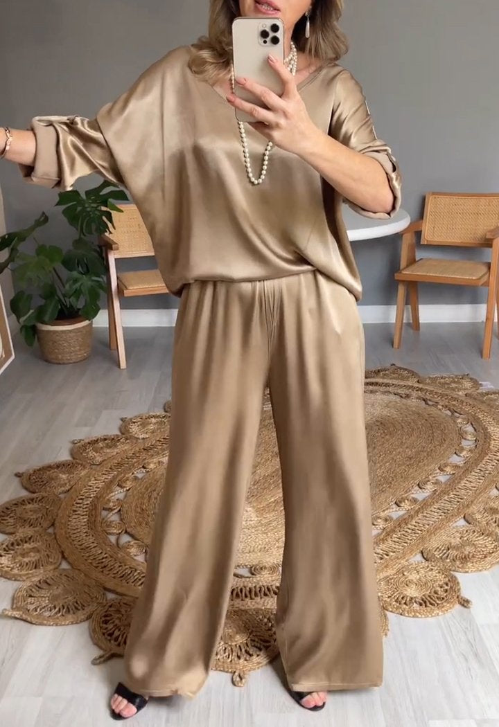 V-neck Satin Two-piece Suit