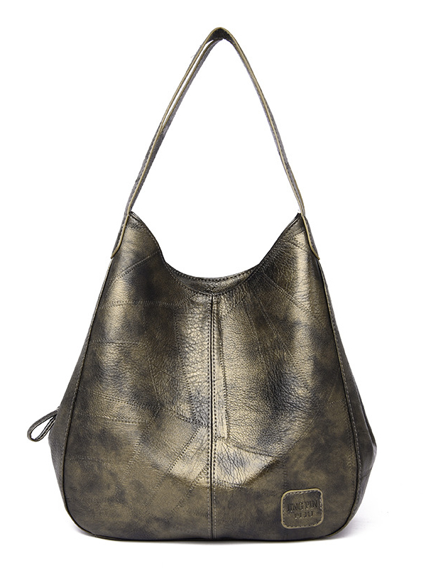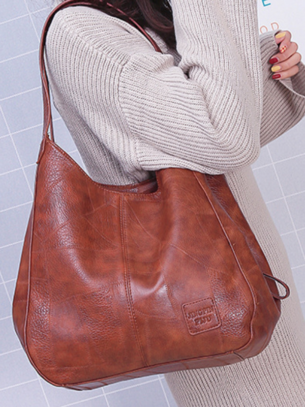 Emcak Vintage Washed Soft Leather Utility Shoulder Bag