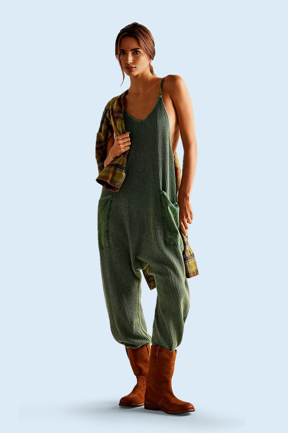 Effortlessly elevated with a lacy cami or laid back with a simple tee, this style of jumpsuit has endless ways to wear.