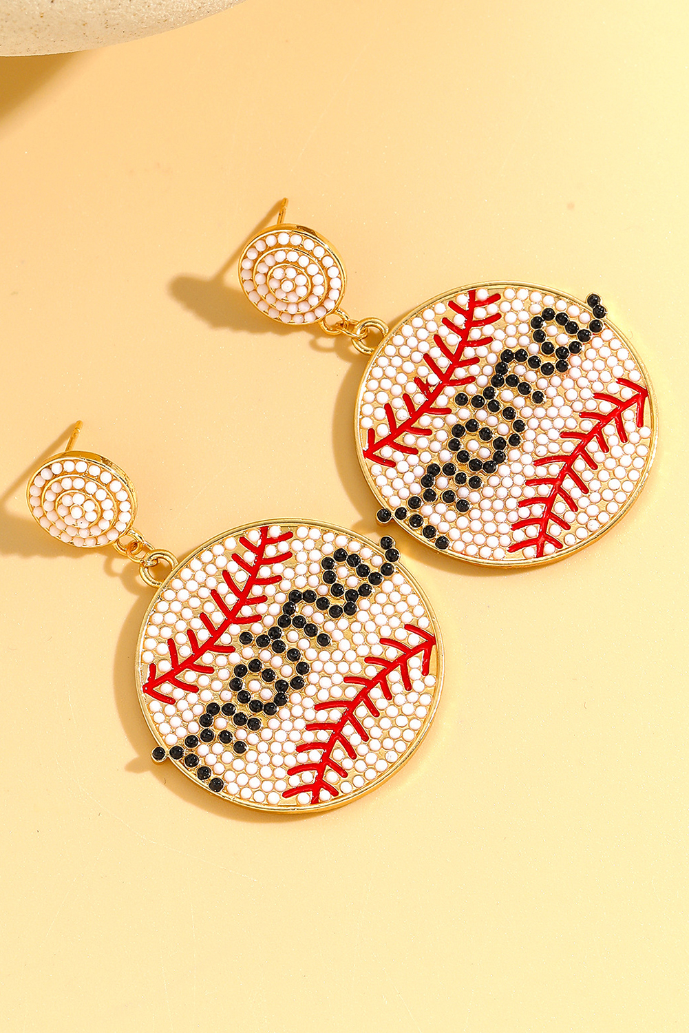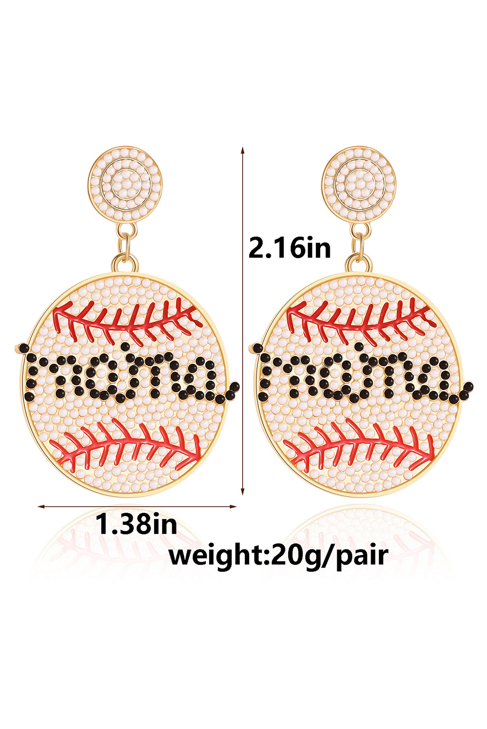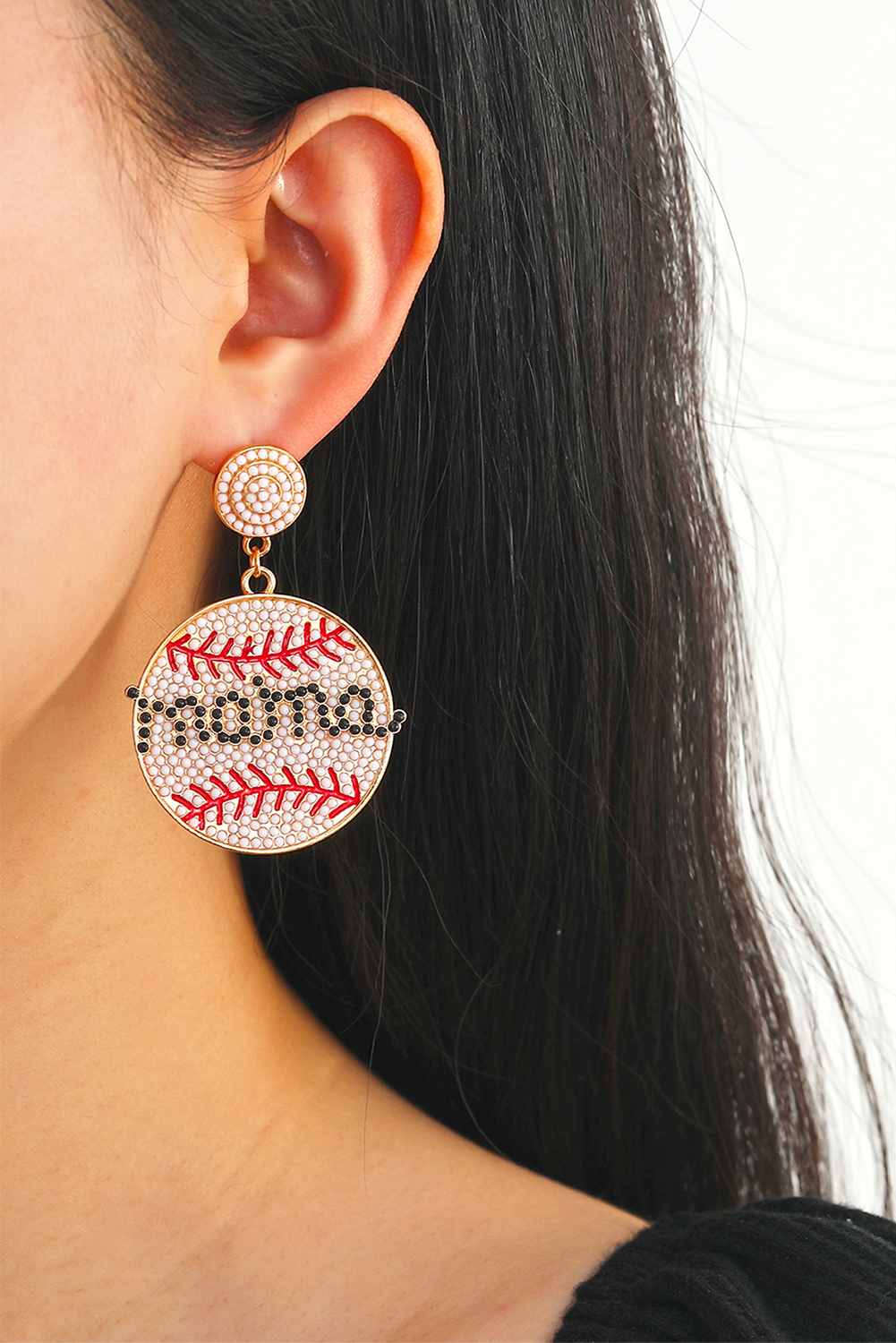 White Crystal mama Beaded Baseball Shape Earrings