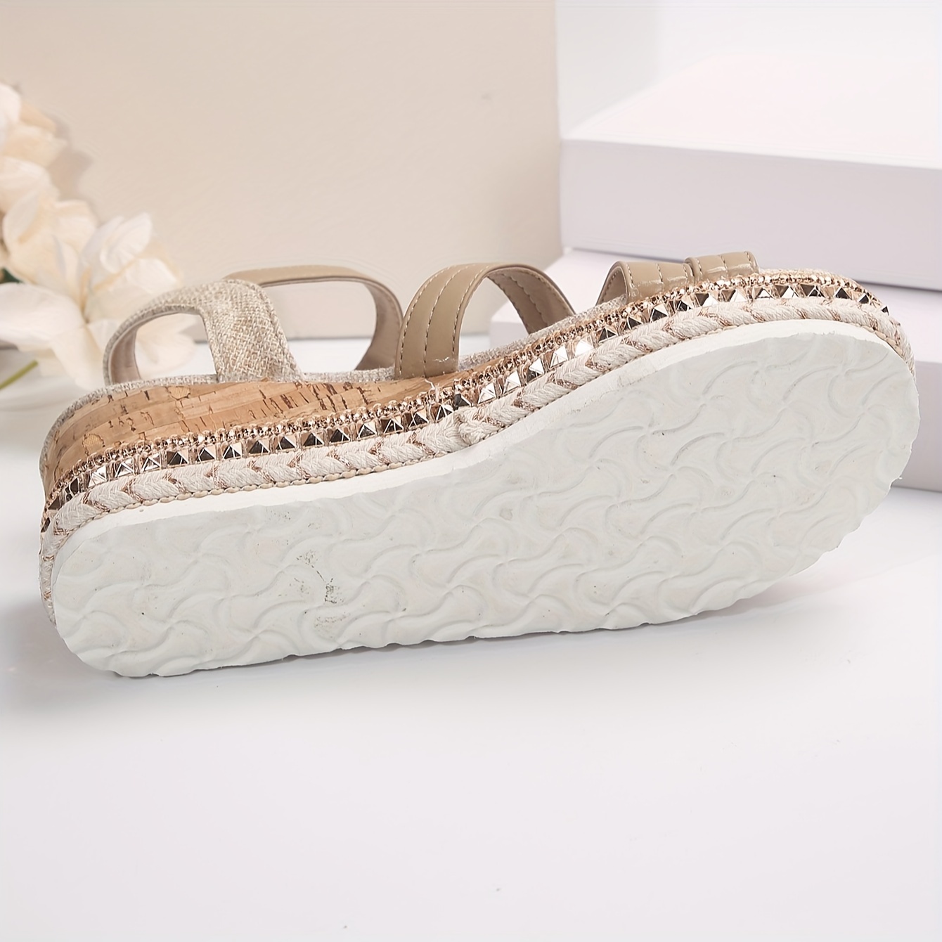 Women's Ankle Strap Platform Sandals, Studded Sole Open Toe Wedge Shoes, All-Match Outdoor Vacation Summer Shoes
