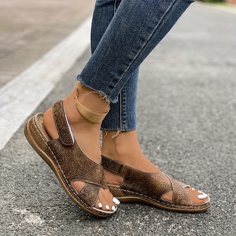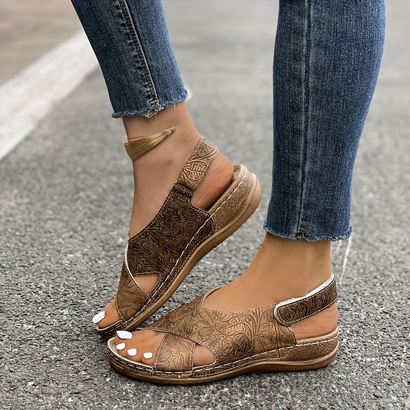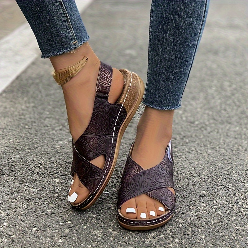 Women's Bohemian Flat Sandals, Crisscross Straps Soft Sole Beach Slides, Casual Comfort Patterned Shoes