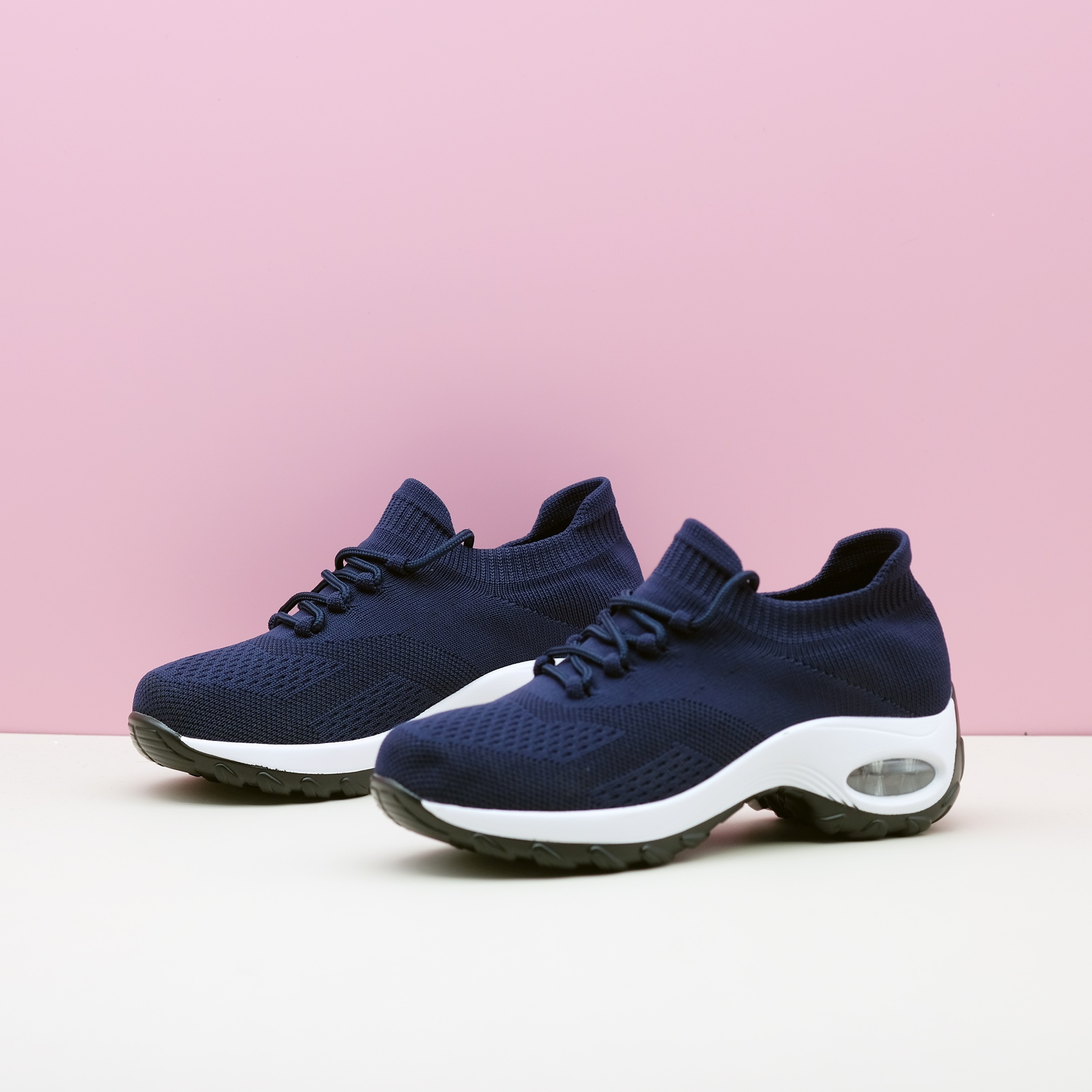 Women's Breathable Knit Chunky Sneakers with Air Cushion, Casual Lace Up Hiking Shoes