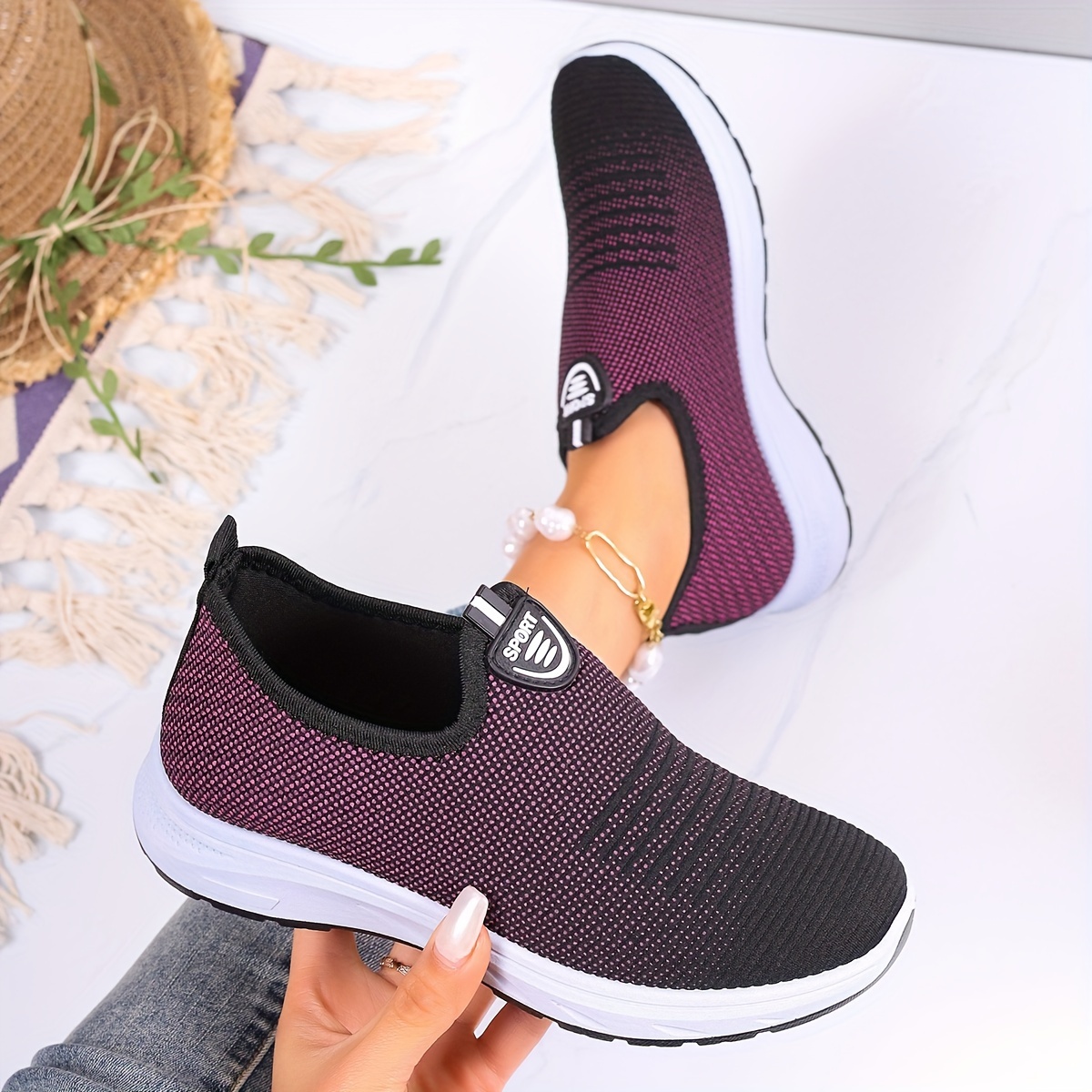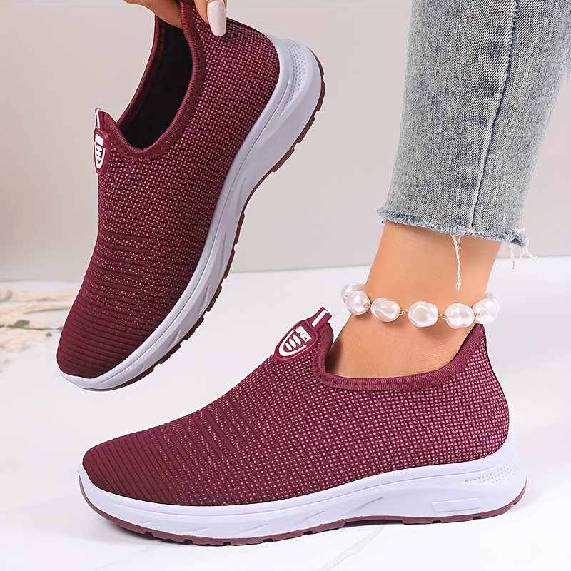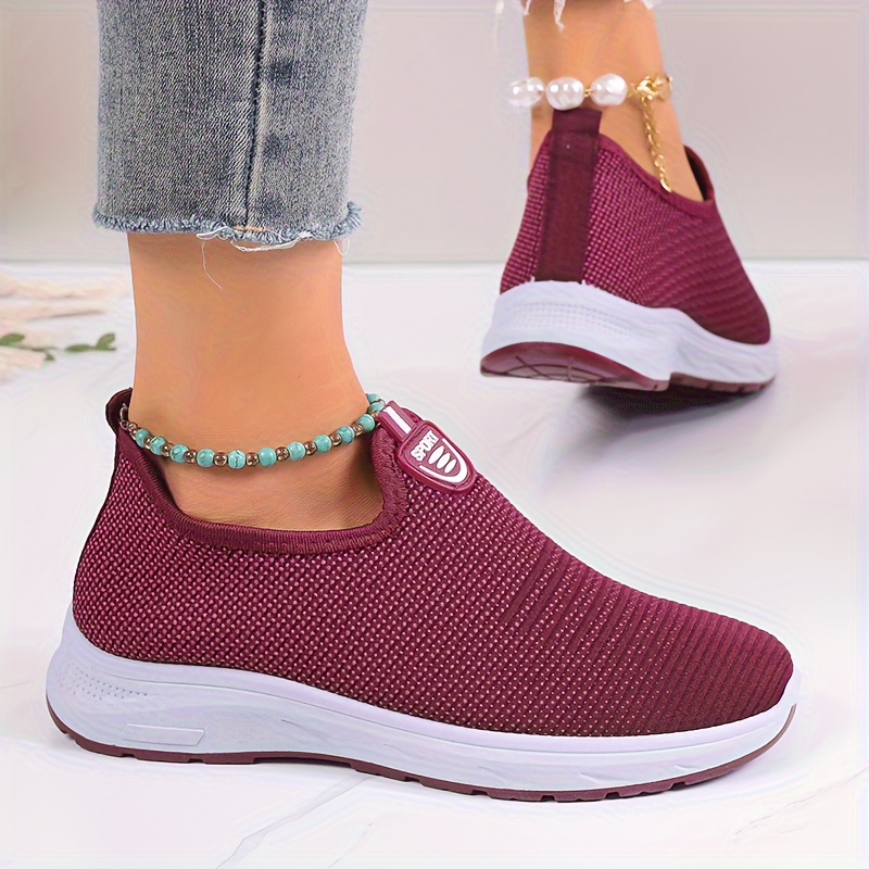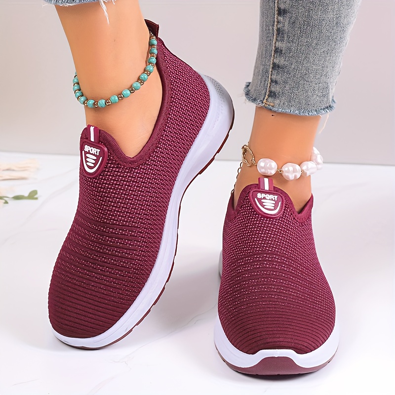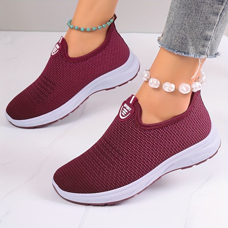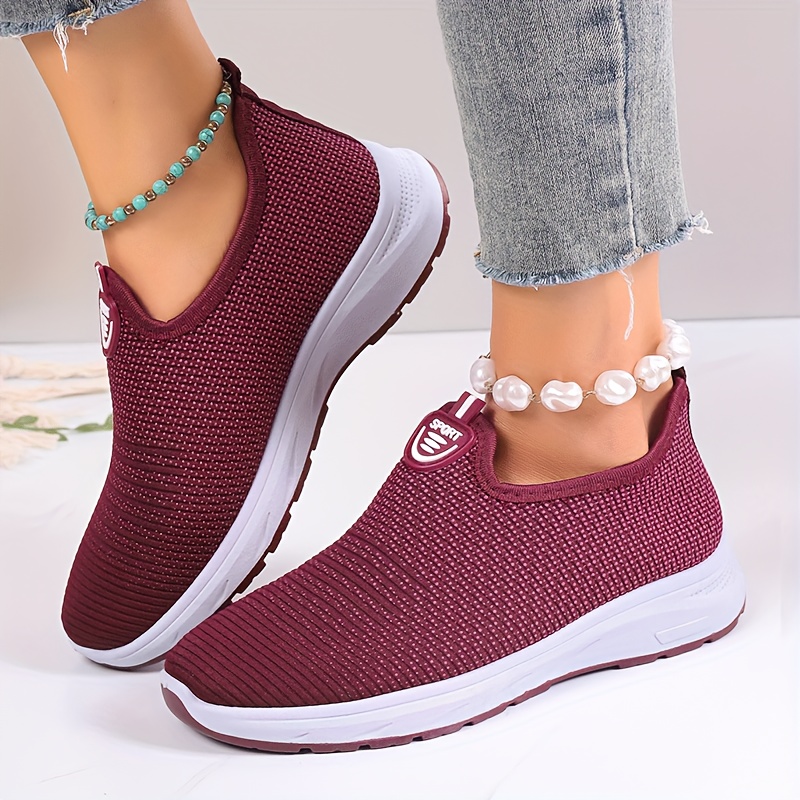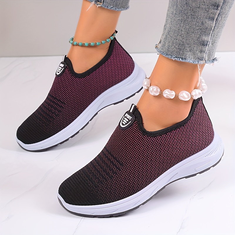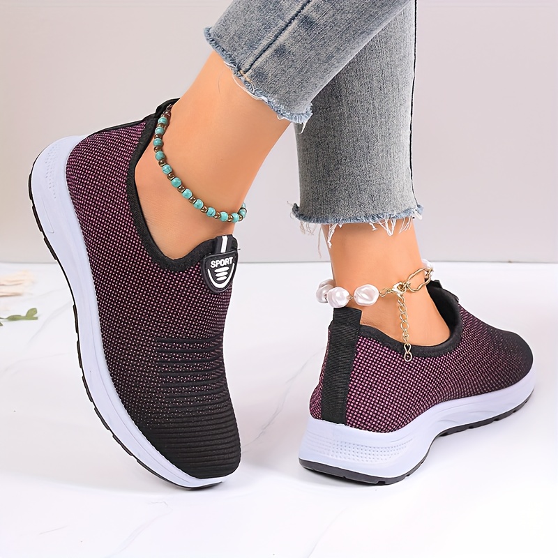 Women's Breathable Knit Sneakers, Casual Slip On Outdoor Shoes, Comfortable Low Top Shoes