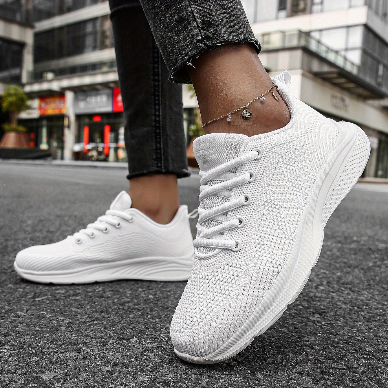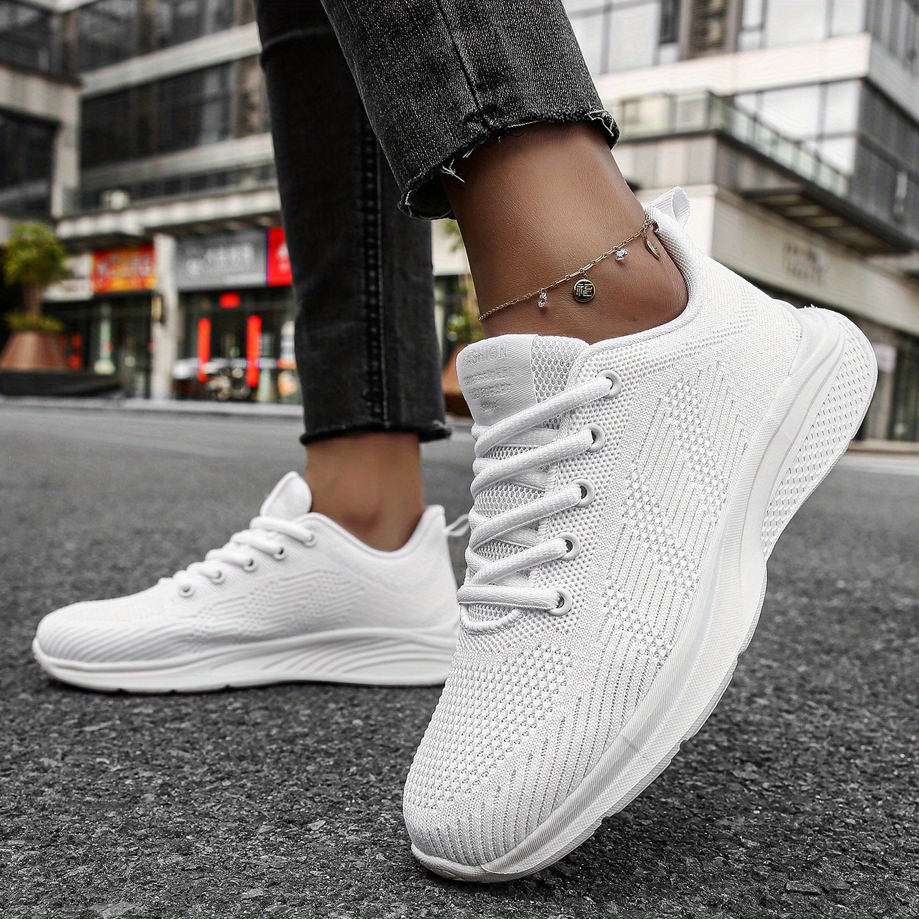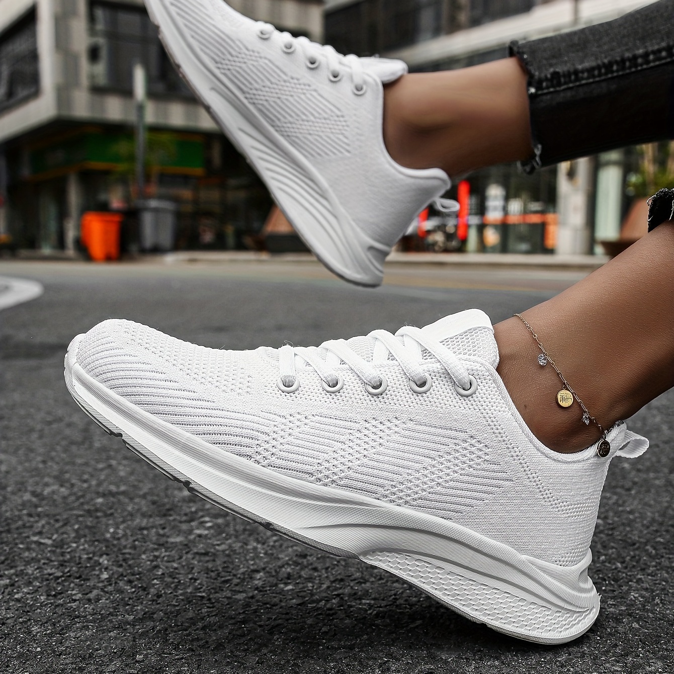 Women's Breathable Mesh Sneakers, Lightweight Low Top Lace Up Shoes, Women's Solid Color Shoes