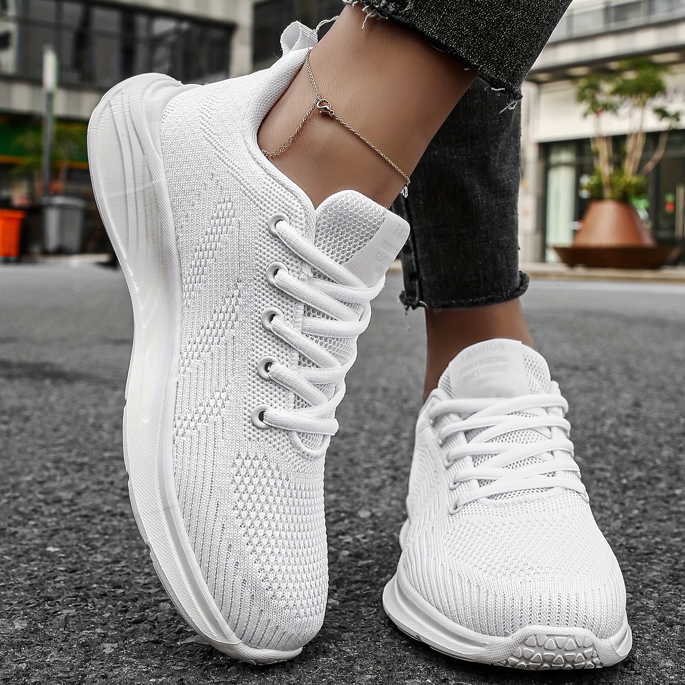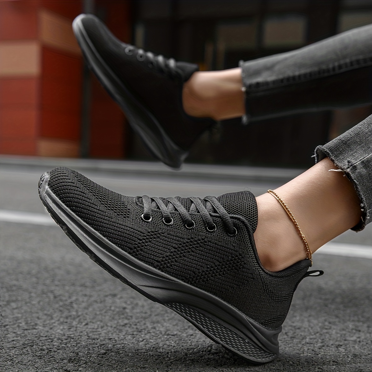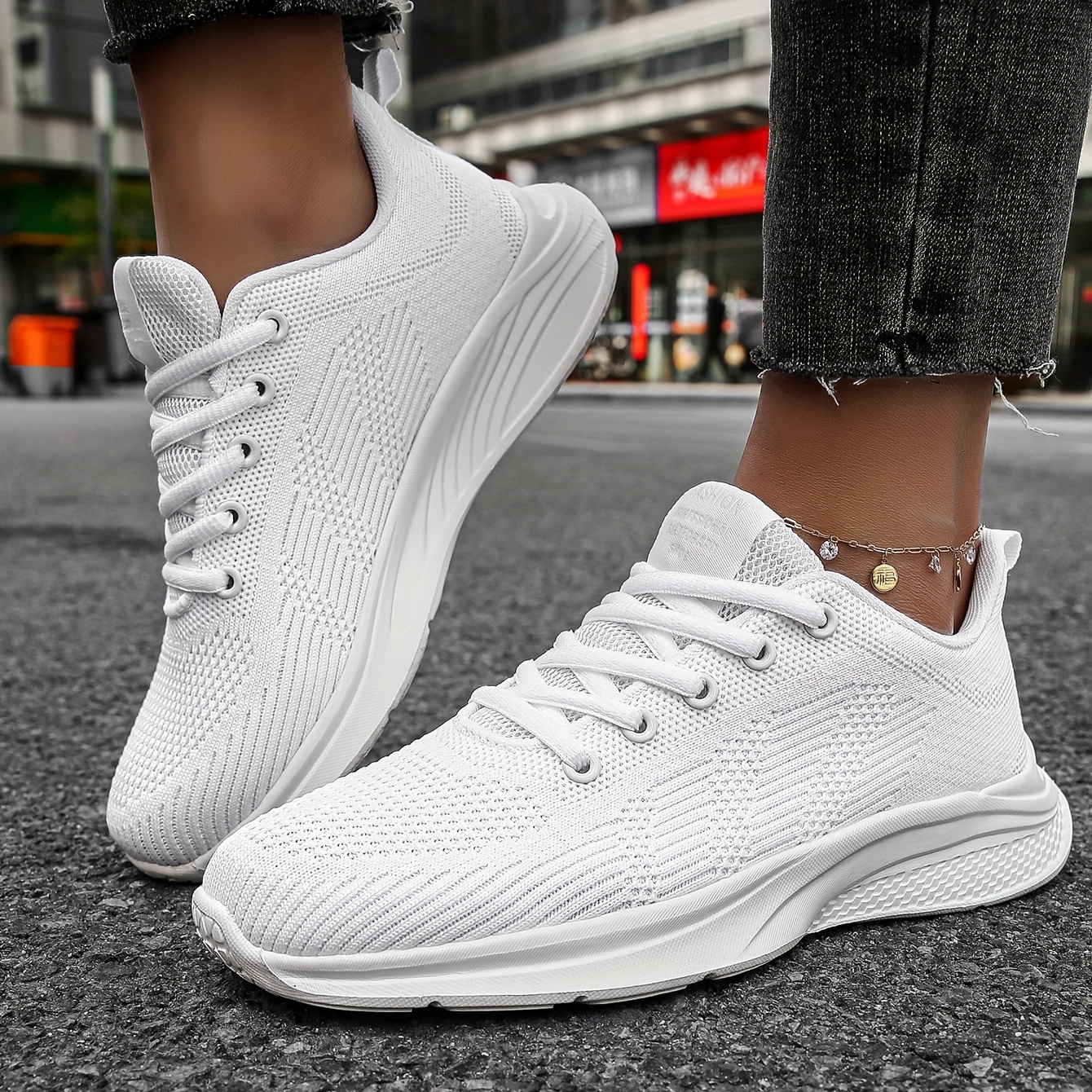 Women's Breathable Mesh Sneakers, Lightweight Low Top Lace Up Shoes, Women's Solid Color Shoes