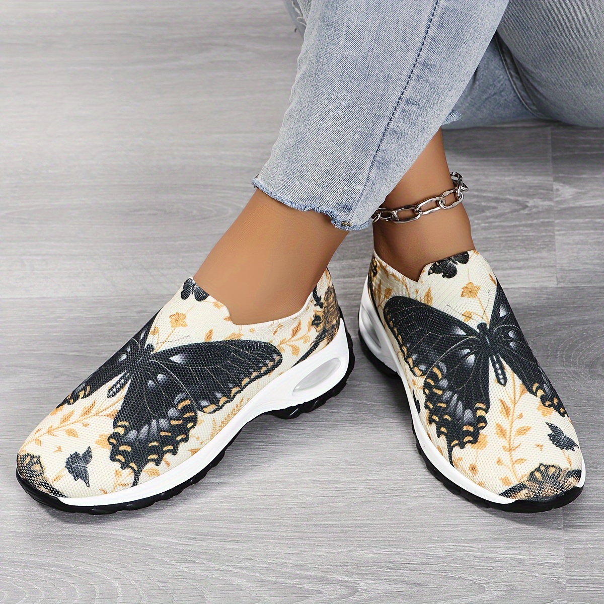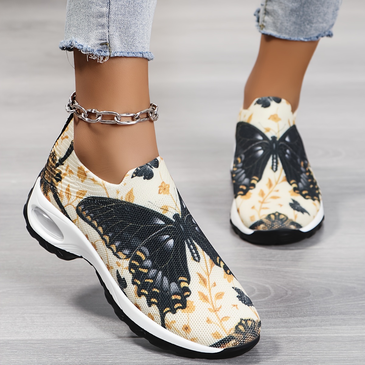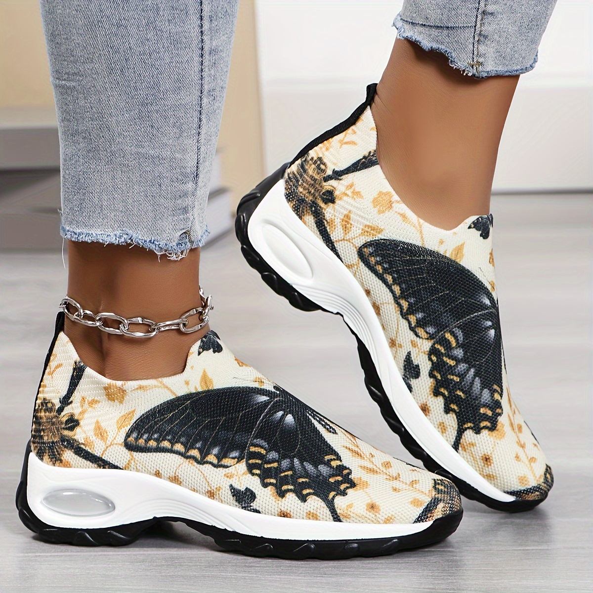 Women's Butterfly Pattern Chunky Sneakers, Casual Slip On Outdoor Shoes, Comfortable Low Top Sport Shoes
