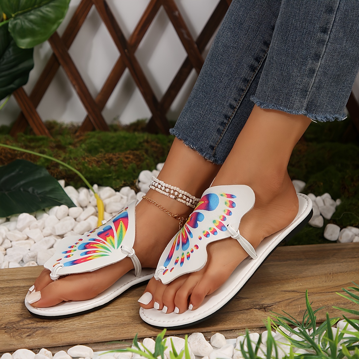 Women's Butterfly Shaped Thong Sandals, Slip On Lightweight Summer Beach Slides, Vacation Summer Beach Slides