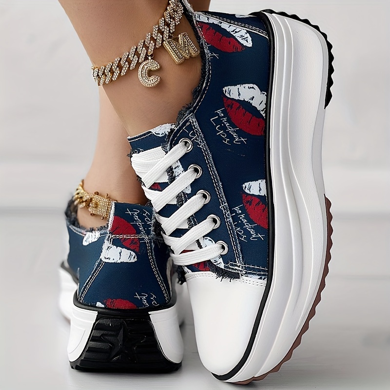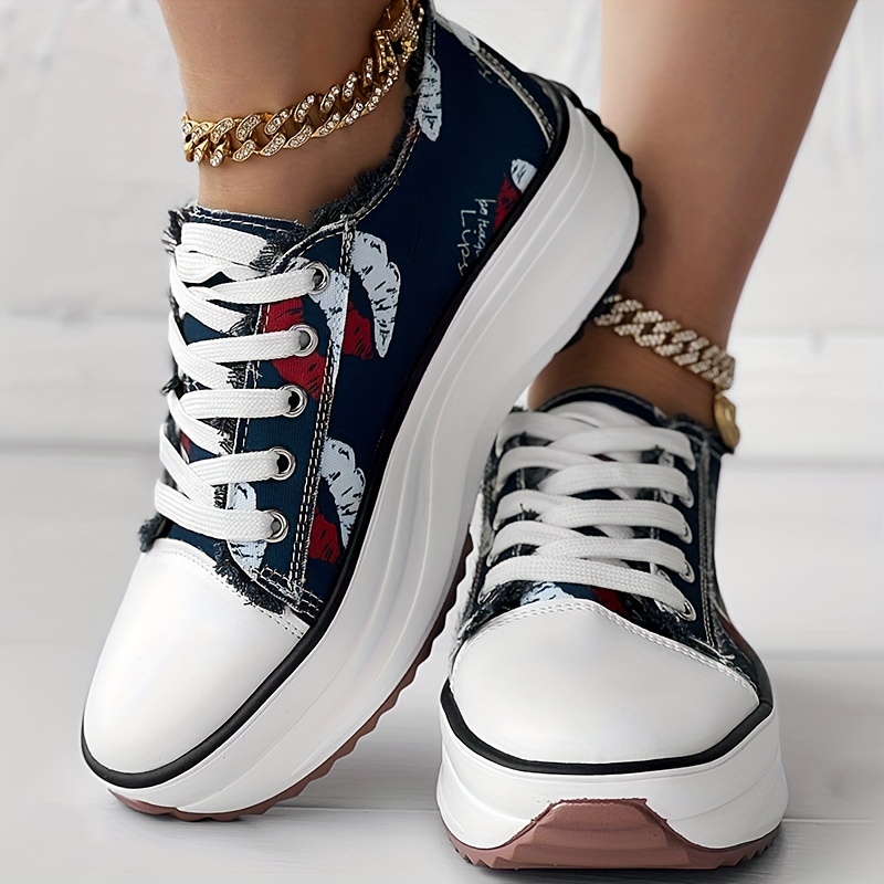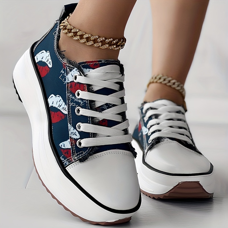 Stylish Design: Colorblock flatform canvas shoes with a low-top round toe lace-up design that is perfect for casual wear.