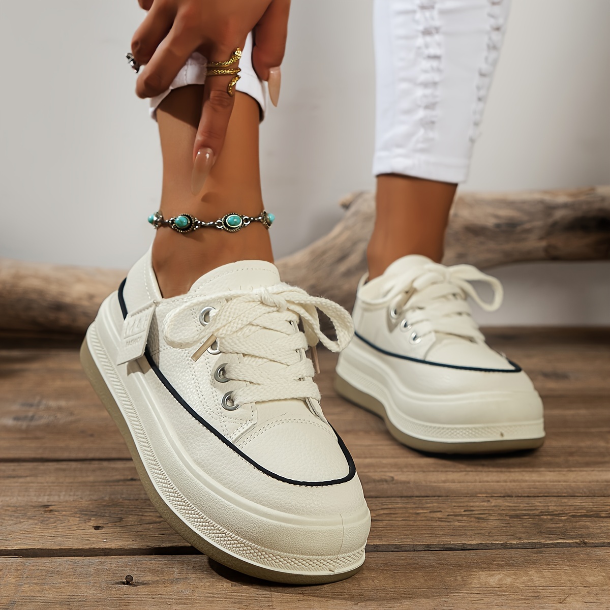 Women's Comfortable Low Top Platform Sneakers - Casual Lace Up Outdoor Shoes