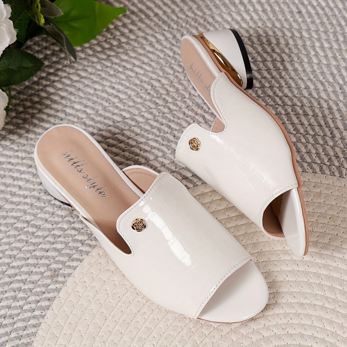 Women's Crocodile Pattern Chunky Heel Sandals, Fashion Open Toe Dress Pumps, Stylish Slip On Heels