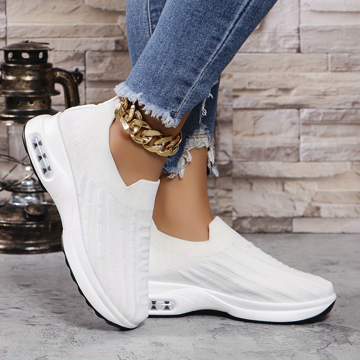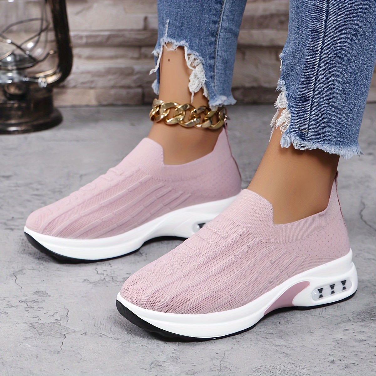Women's Fashion Comfortable Air Cushion Sneakers, Casual Slip On Outdoor Shoes, Comfortable Low Top Sport Shoes