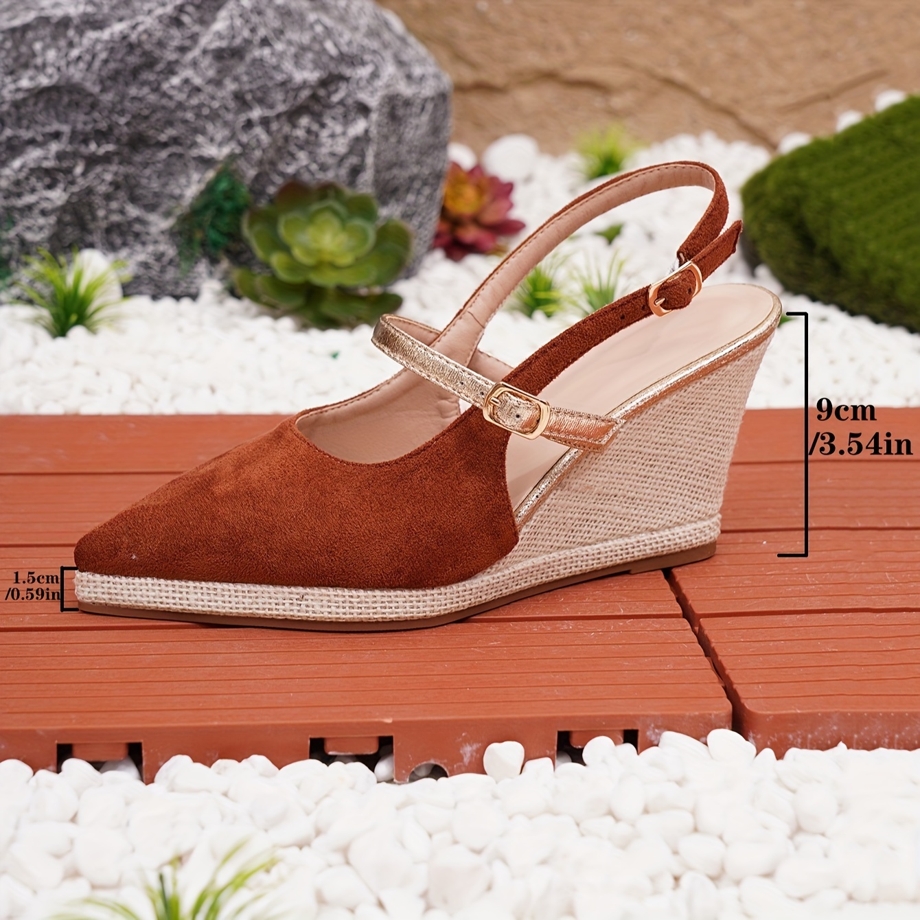 Women's Fashion Slingback Wedge Sandals, Elegant Pointed Toe Buckle Strap Heels, Versatile Going Out Sandals