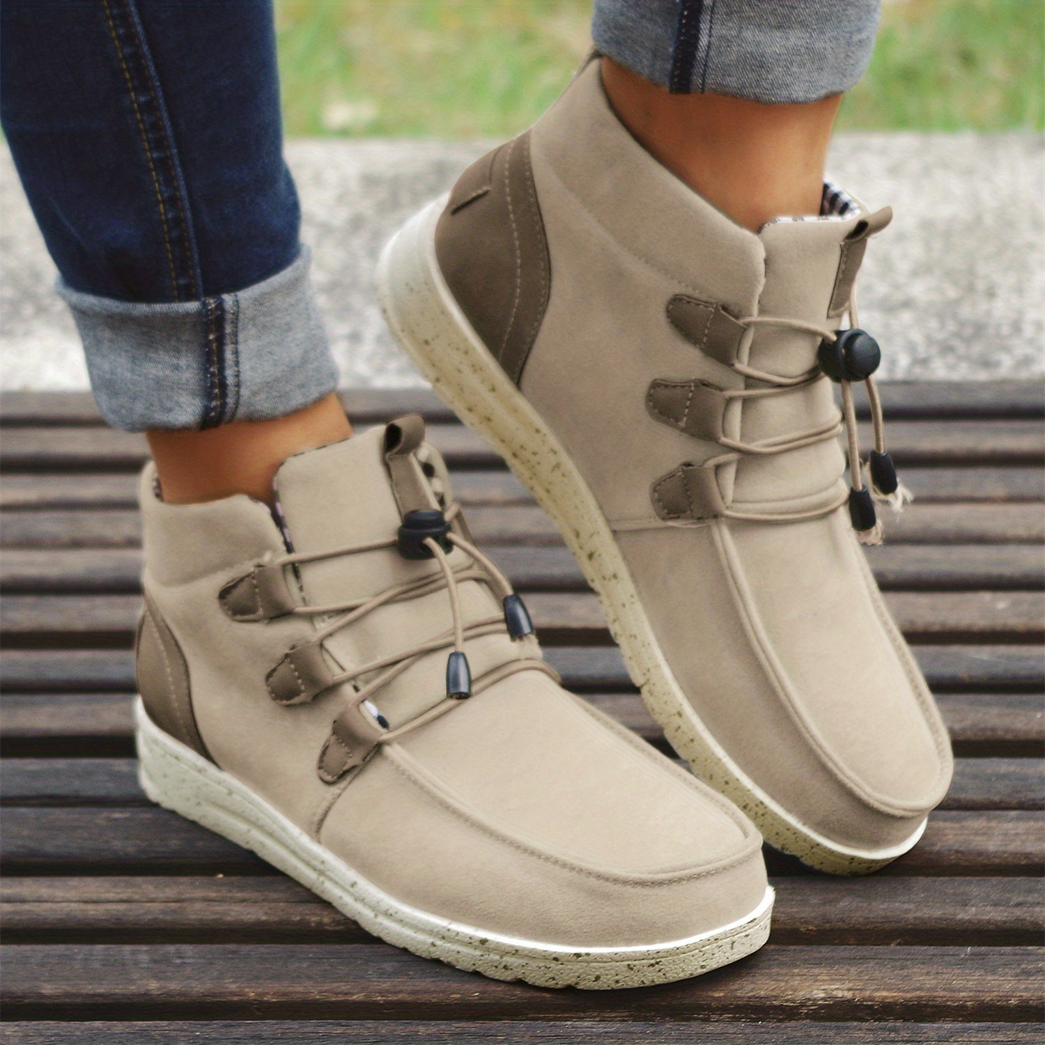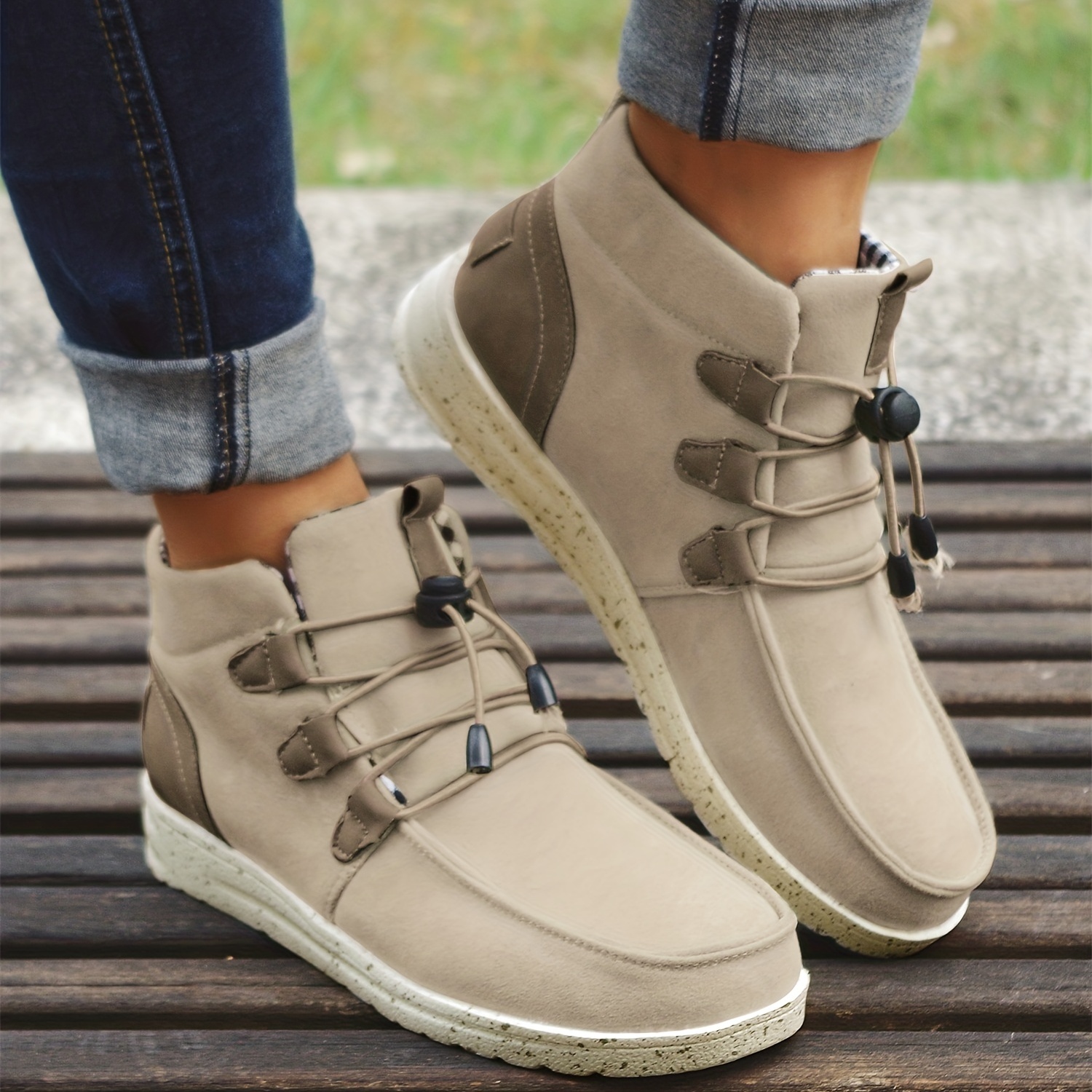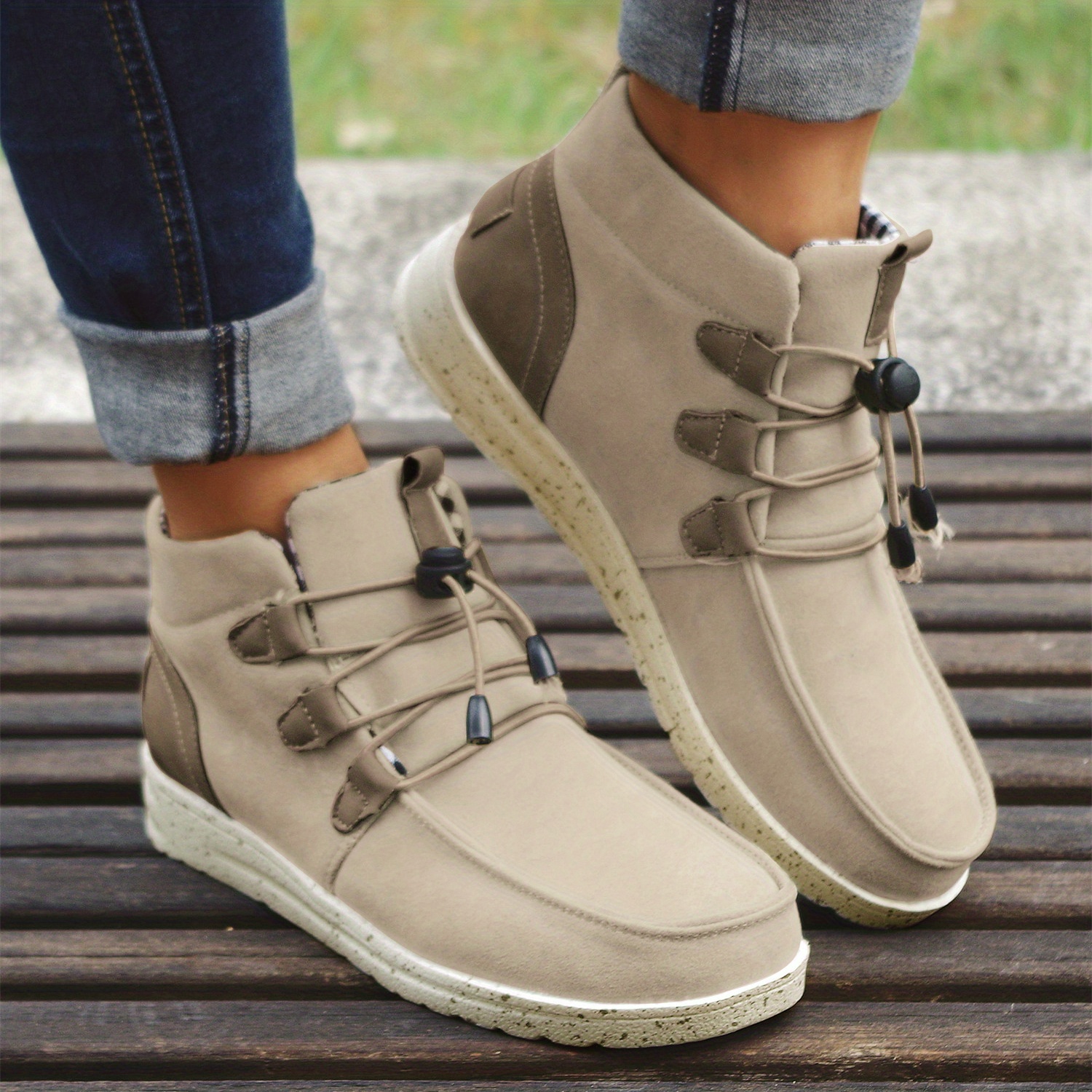 Women's High Top Sneaker Boots, Comfortable Round Toe Drawstring Shoes, Casual Warm Short Boots