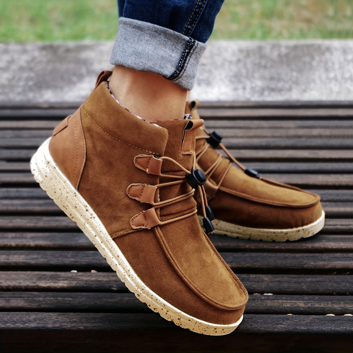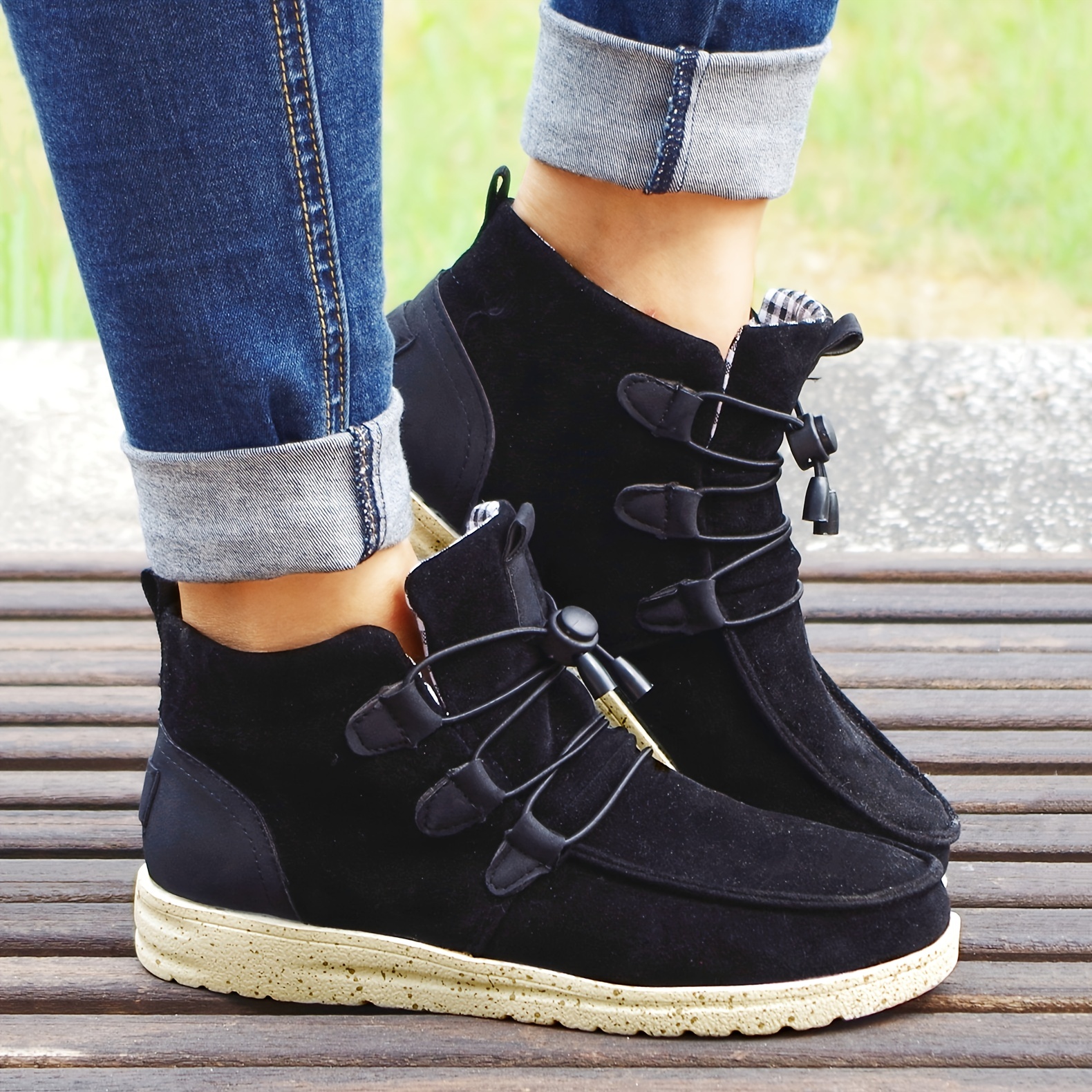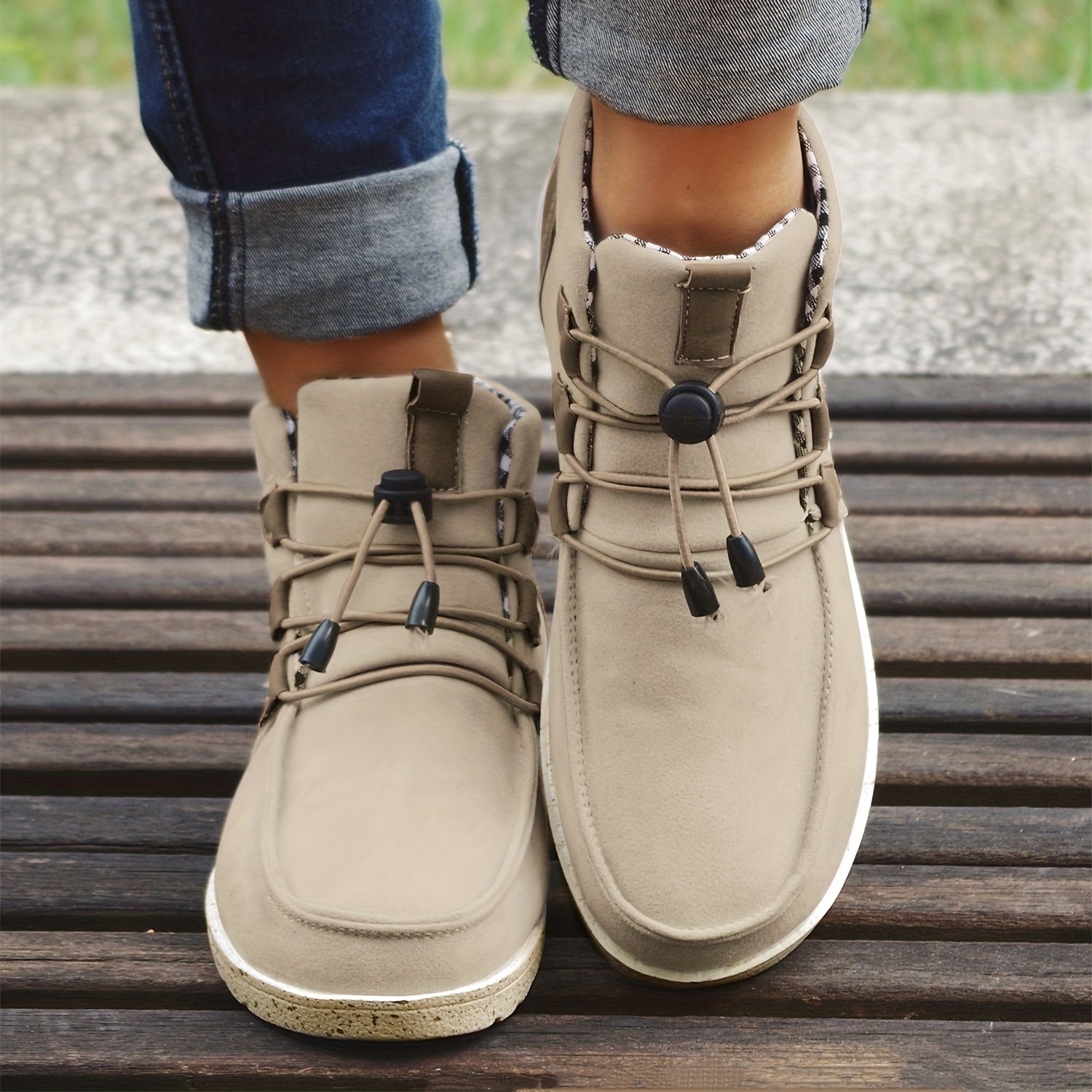 Women's High Top Sneaker Boots, Comfortable Round Toe Drawstring Shoes, Casual Warm Short Boots