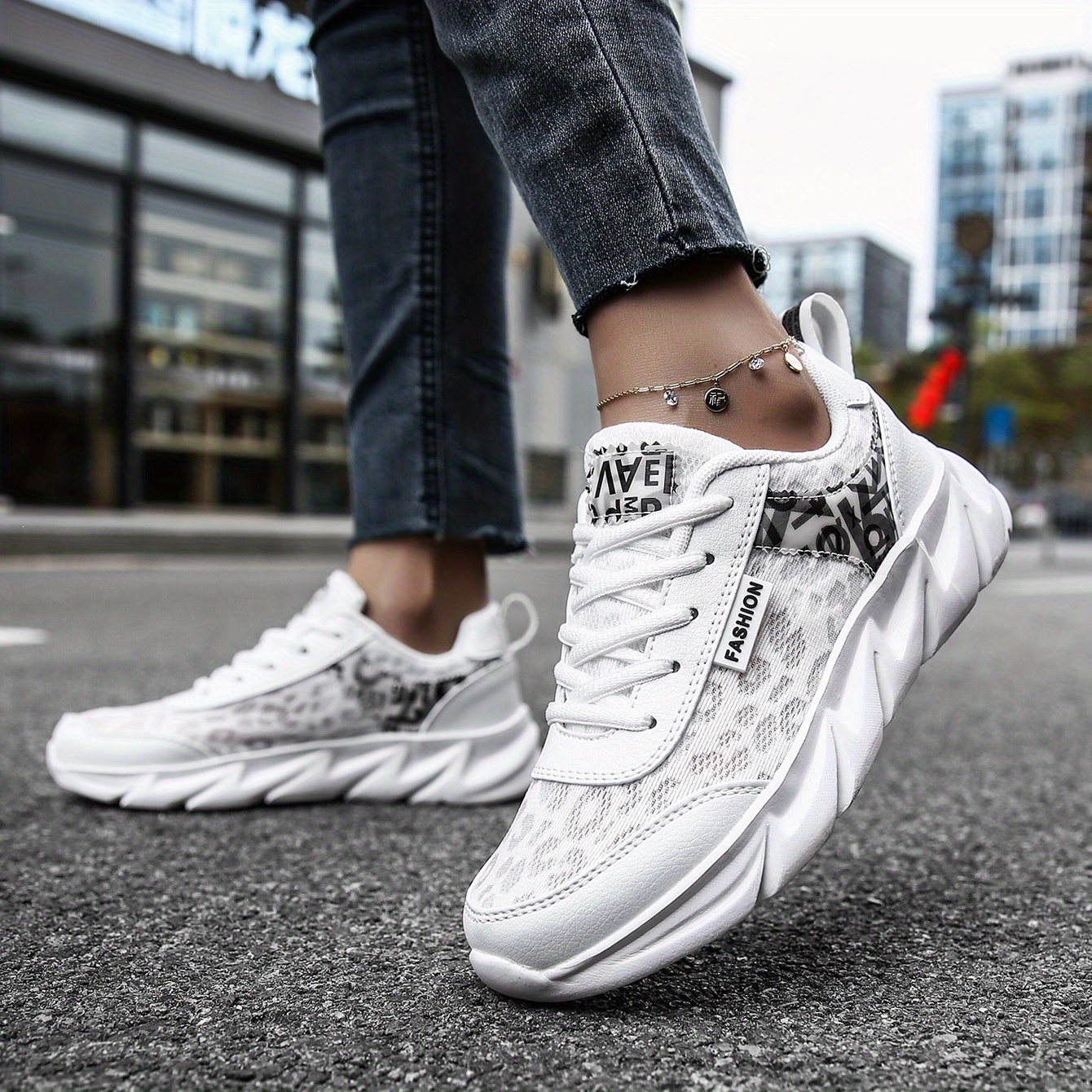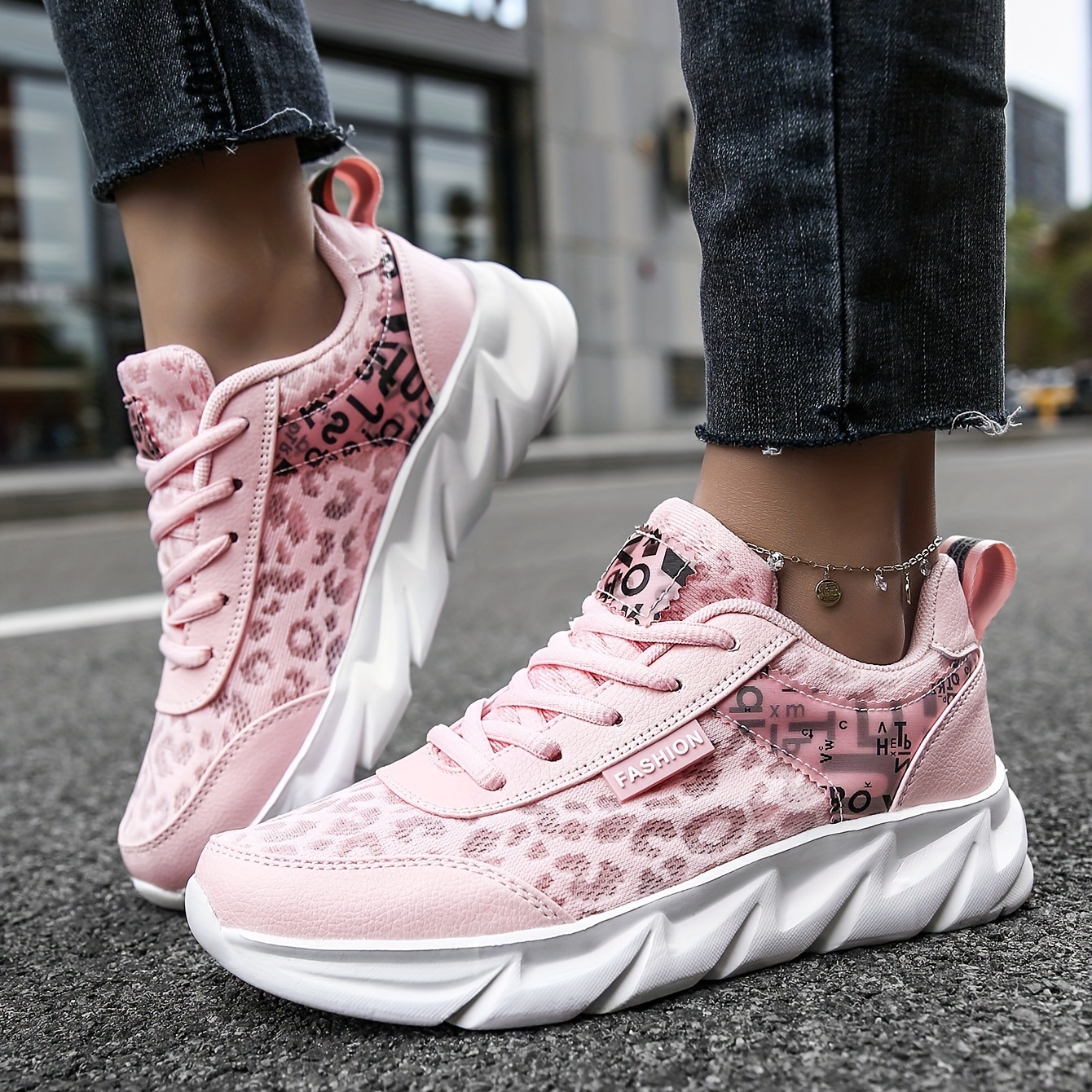 Women's Mesh Letter Printed Sports Shoes, Fashion & Breathable Lace Up Low Top Running Shoes, Shock Absorption Walking Sneakers