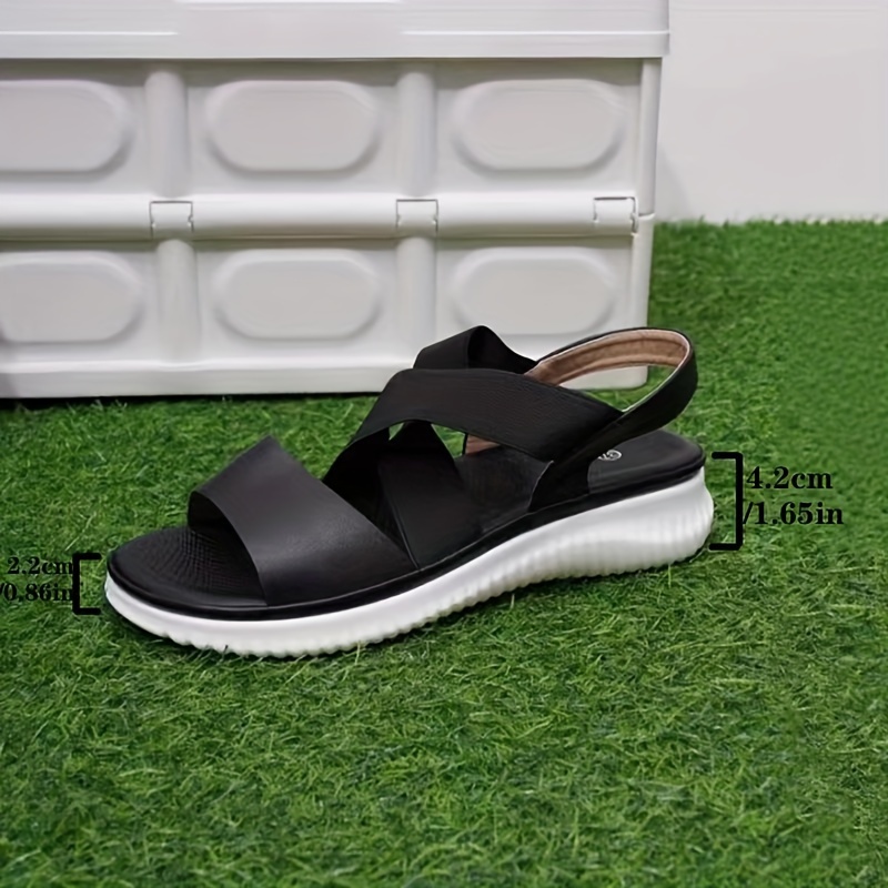 Women's Solid Color Flat Sandals, Casual Open Toe Summer Shoes, Comfortable Elastic Band Sandals