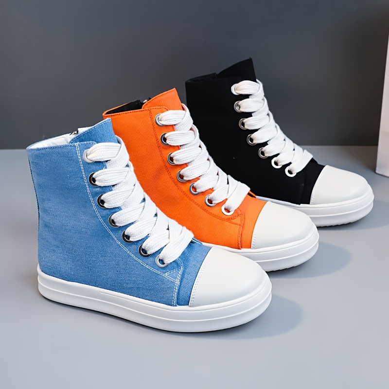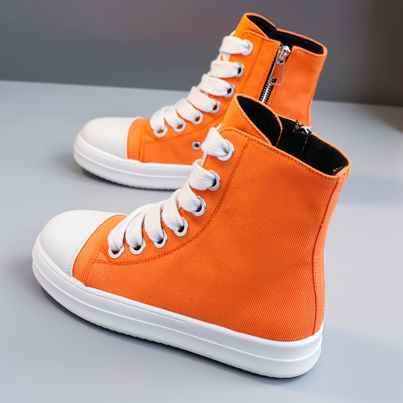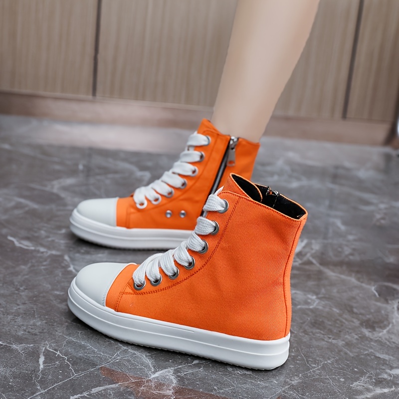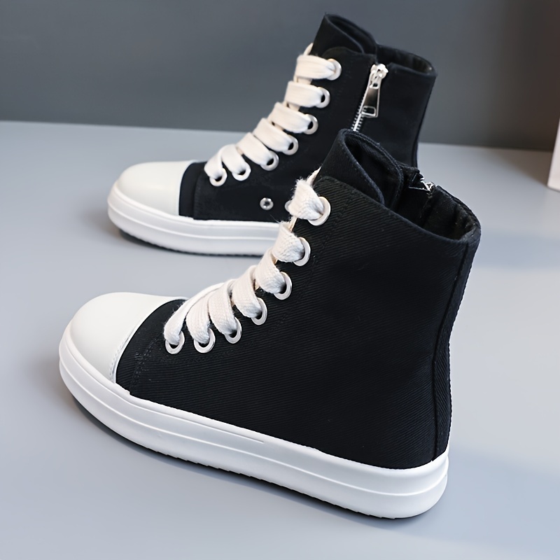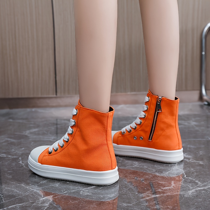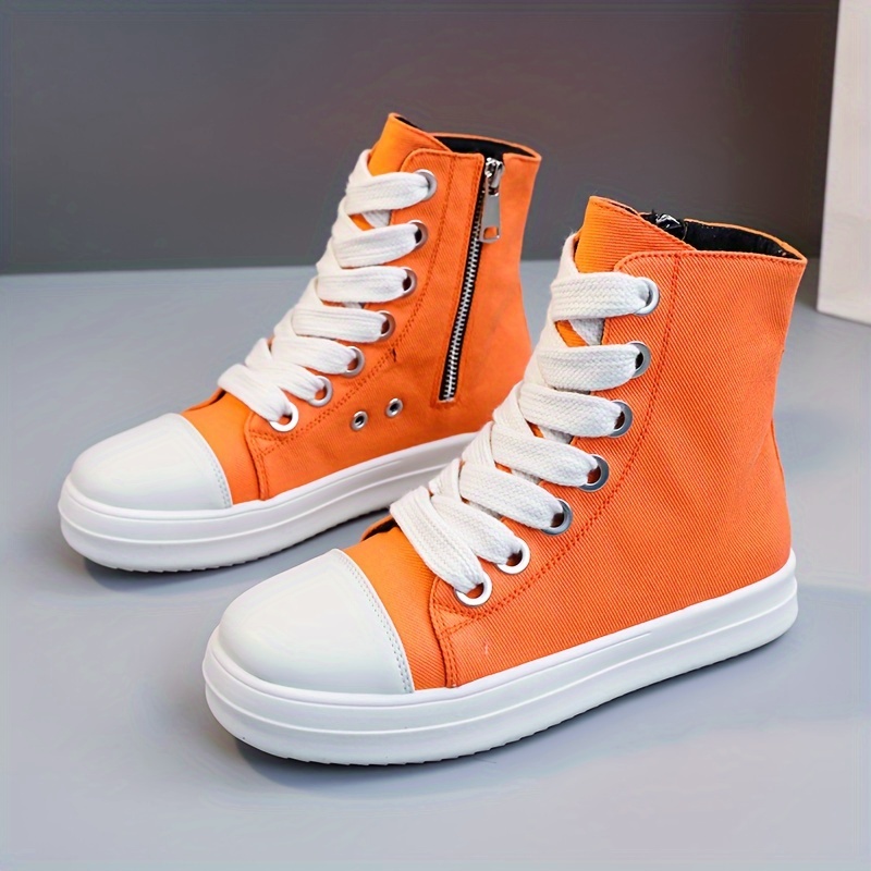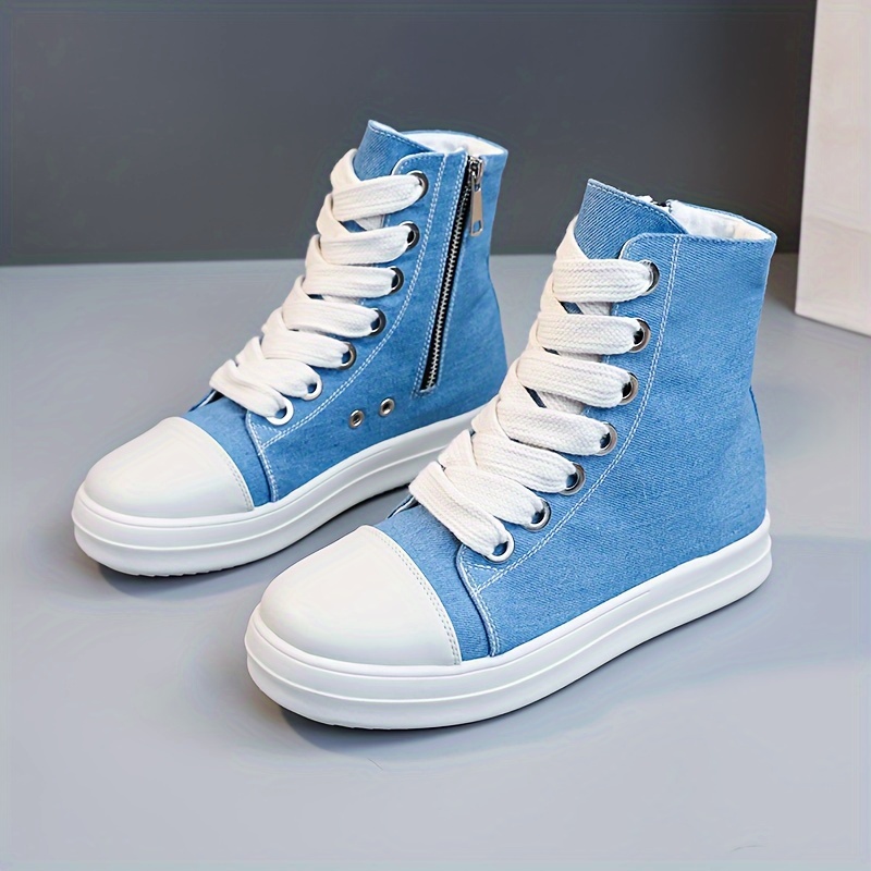 Women's Solid Color High Top Sneakers, Casual Lace Up Outdoor Shoes, Comfortable Side Zipper Shoes