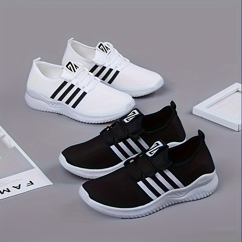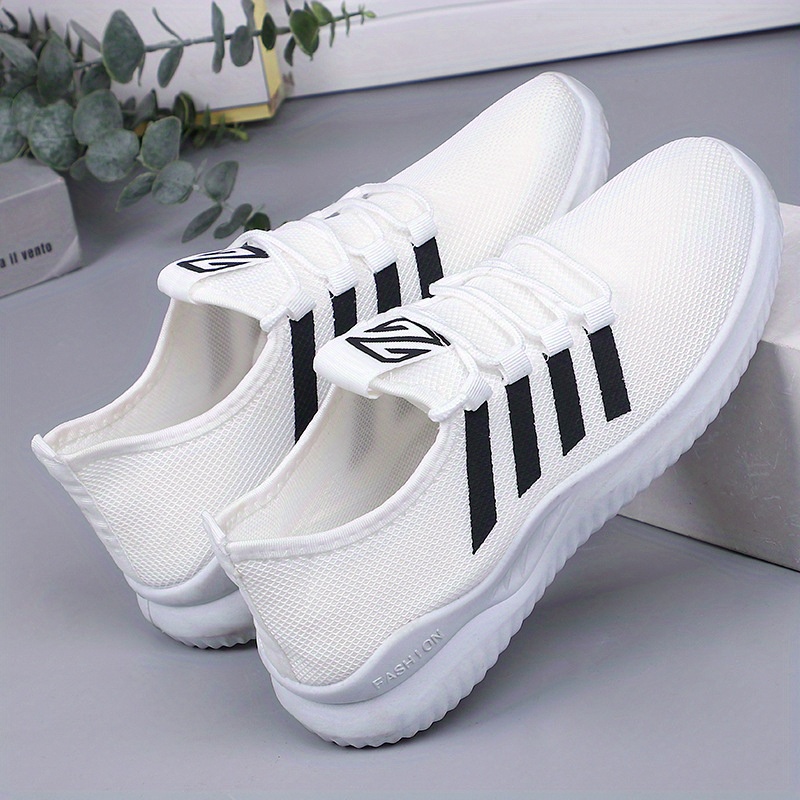 Women's Striped Pattern Sneakers, Casual Lace Up Outdoor Shoes, Lightweight Low Top Sport Shoes