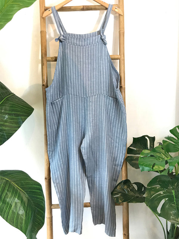 Our Soft and Slouchy Striped Suspenders Overalls are featured in a relaxed laid back style, with a straight, slightly tapered leg, and adjustable tie straps. Featured with two side pockets for extra detailing and with a slightly cropped length for super effortless summer styling.