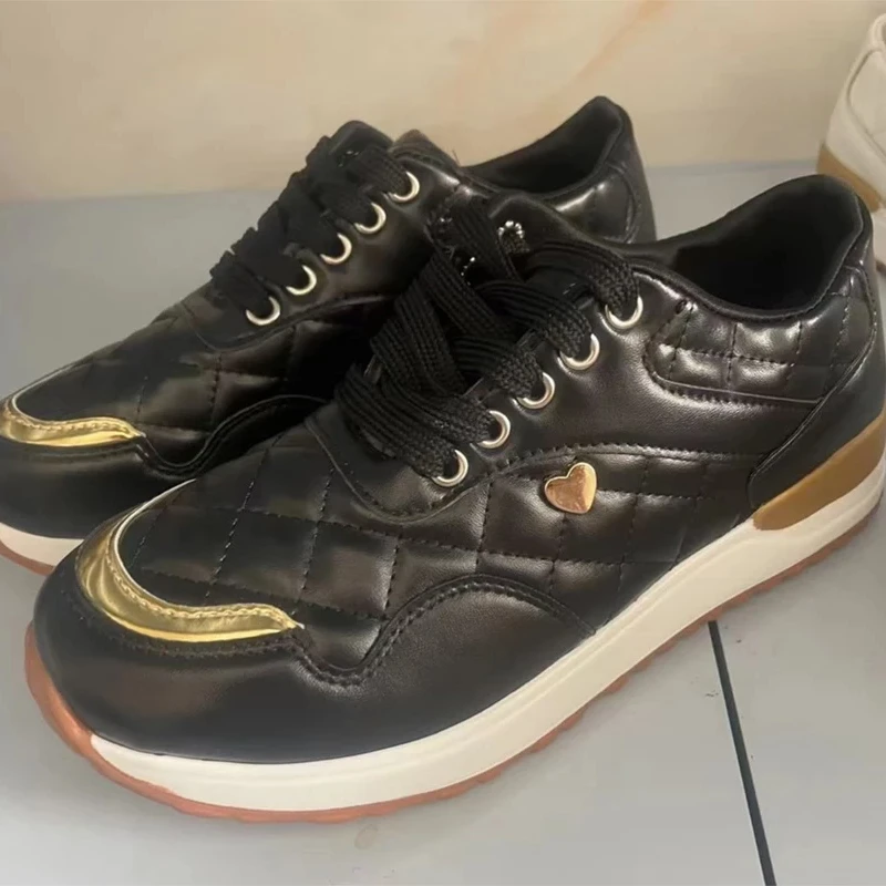 Women's Thick Sole PU Leather Stitching Casual Sneakers