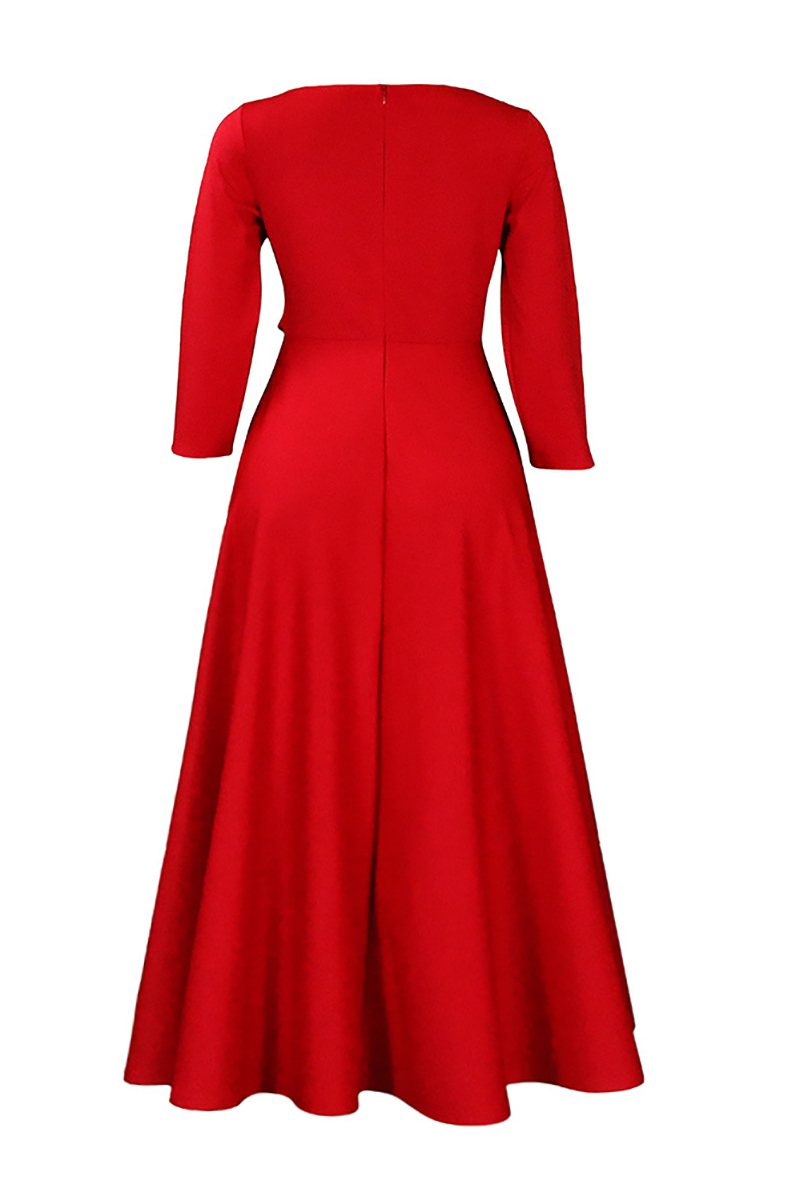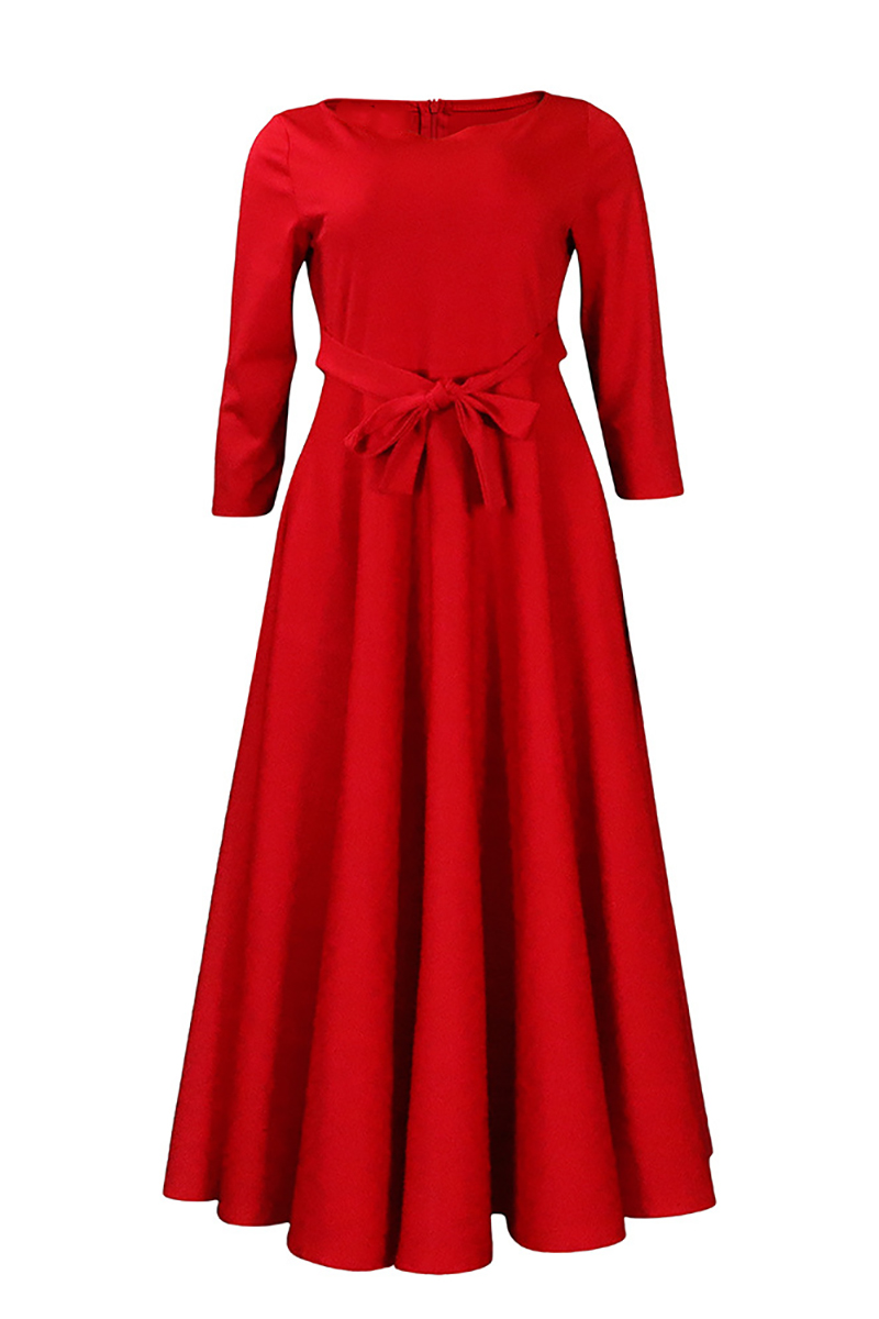 Xpluswear Plus Size Red Casual Round Neck With Pocket Wrap Maxi Dress