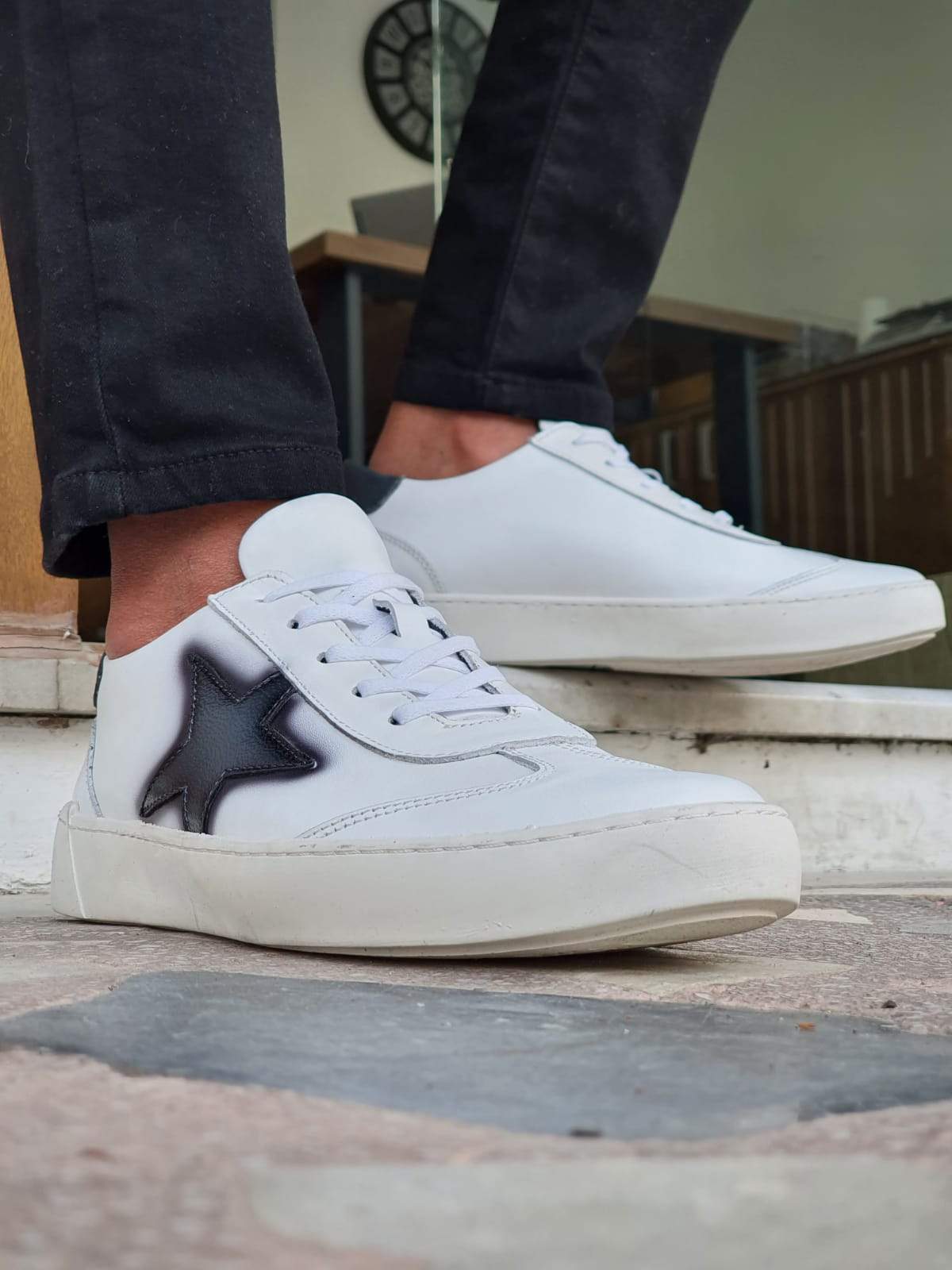 Salerno White Star Mid-Top Lace Up Sneakers