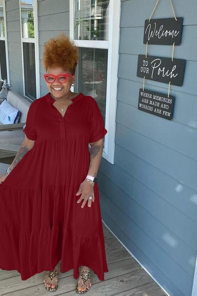 You'll look great wearing this tiered midi dress with a casual style, relaxed silhouette, and a flattering boat neckline. You'll attract compliments from the opposite sex, boyfriend, or husband.