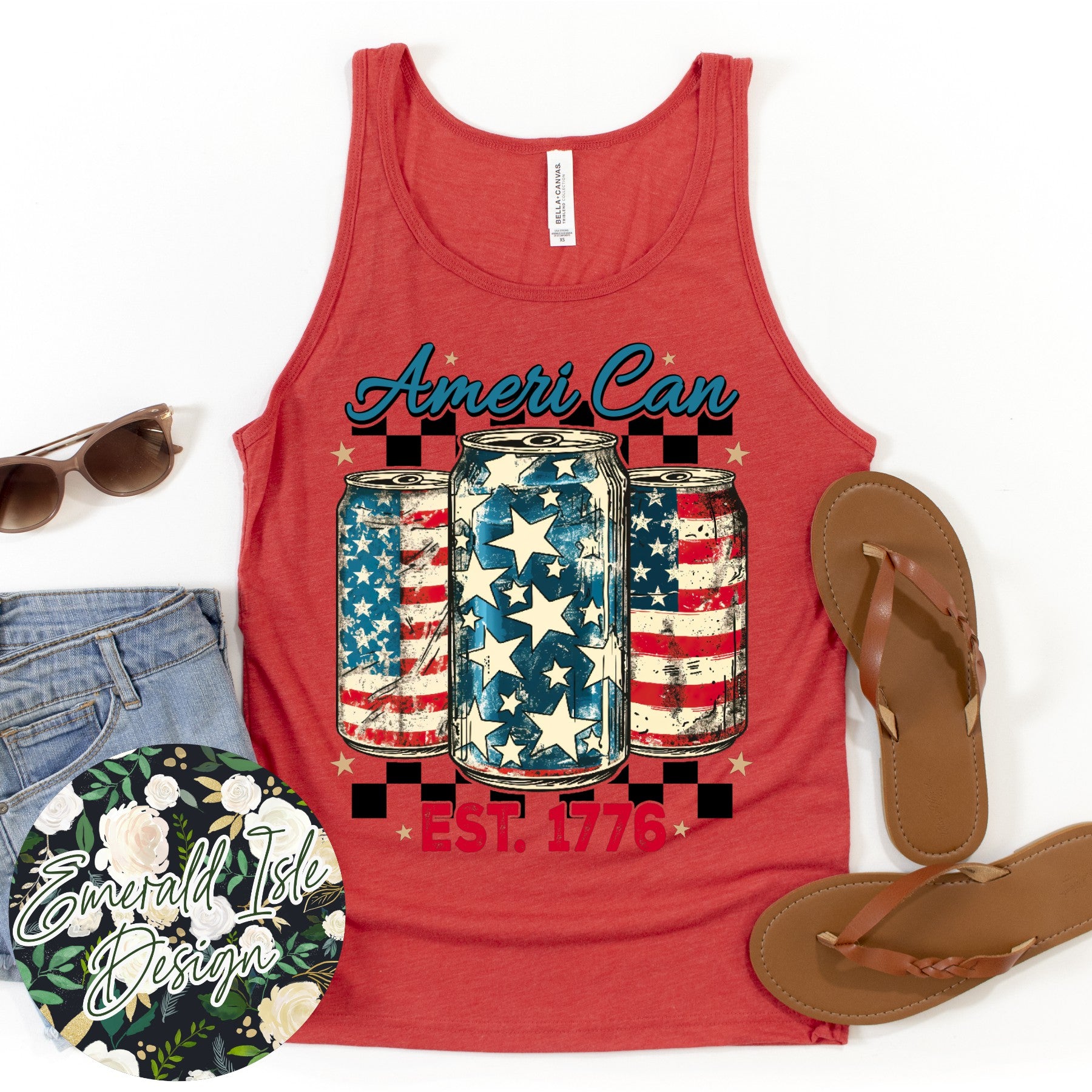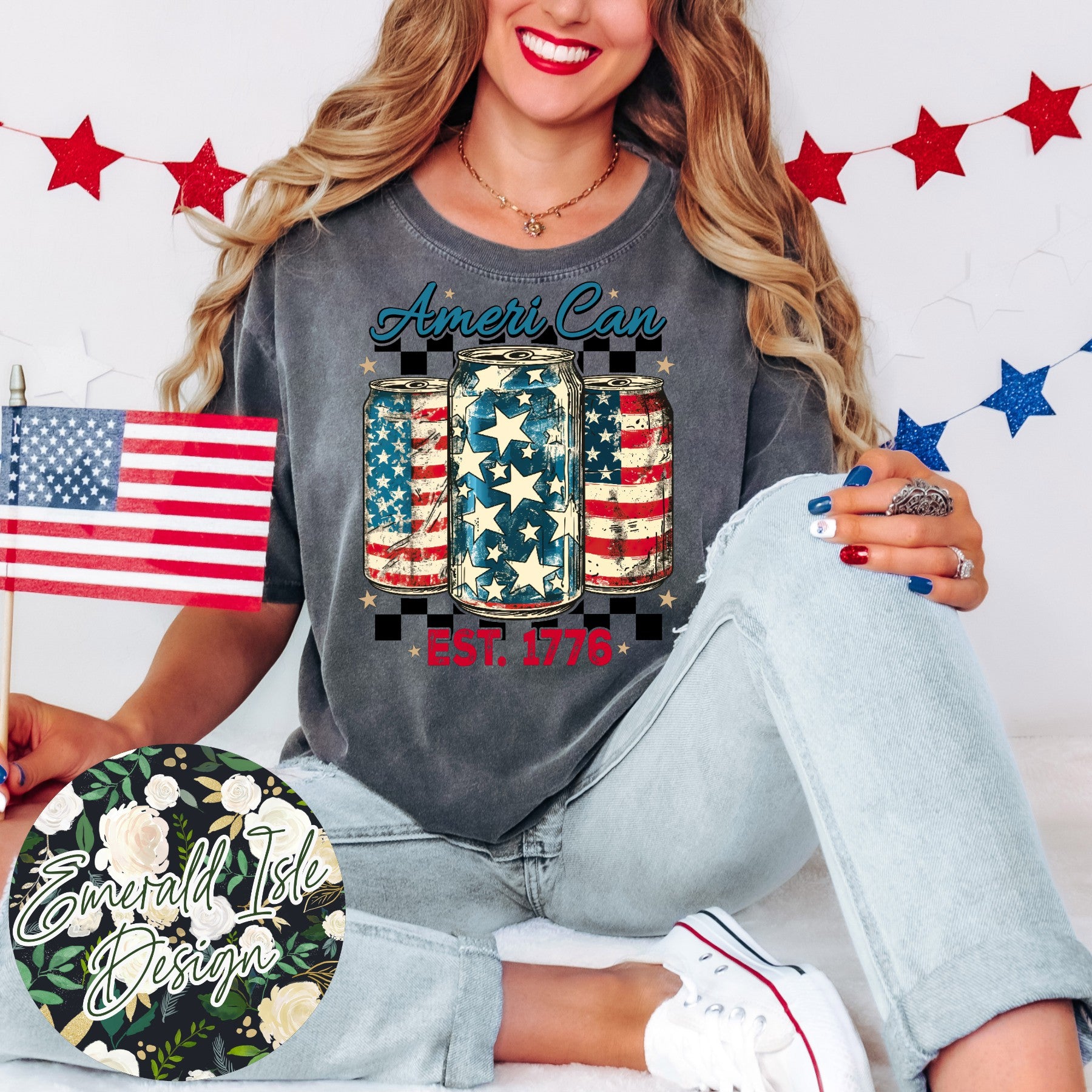 Celebrate in style with the Ameri-Can Est. 1776 Design! This comfy, unisex shirt is perfect for your 4th party attire. Show off your patriotism with this playful, quirky design. (Limited edition, get yours now!)