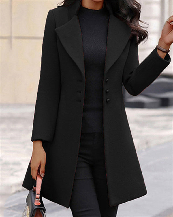 Lapel 3 Button Simple Wolllen Coat Overcoat