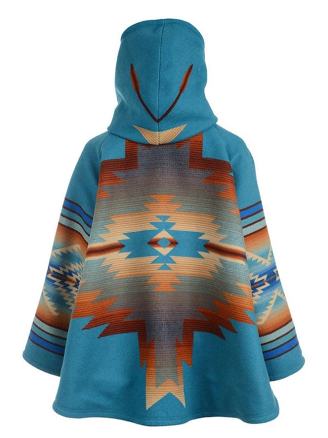 Ethnic Geometric Print Hooded Coat