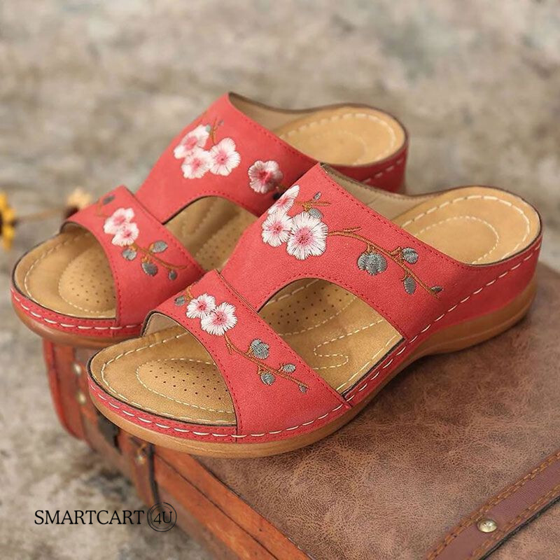 UniqComfyTM Premium Flower Embroidered Orthopedic Wedge Sandals