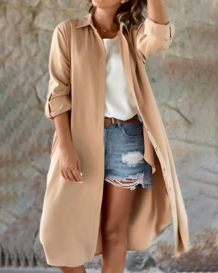 Solid Color Loose Casual Lapel Long Button Cardigan