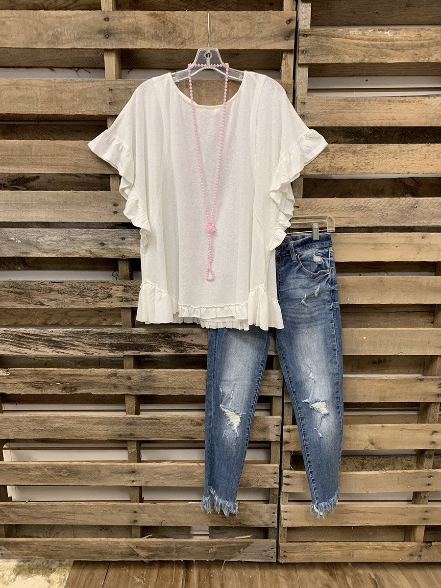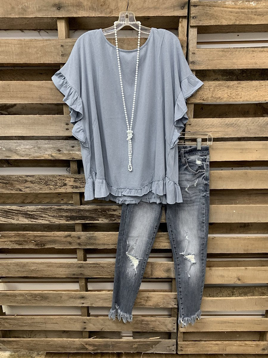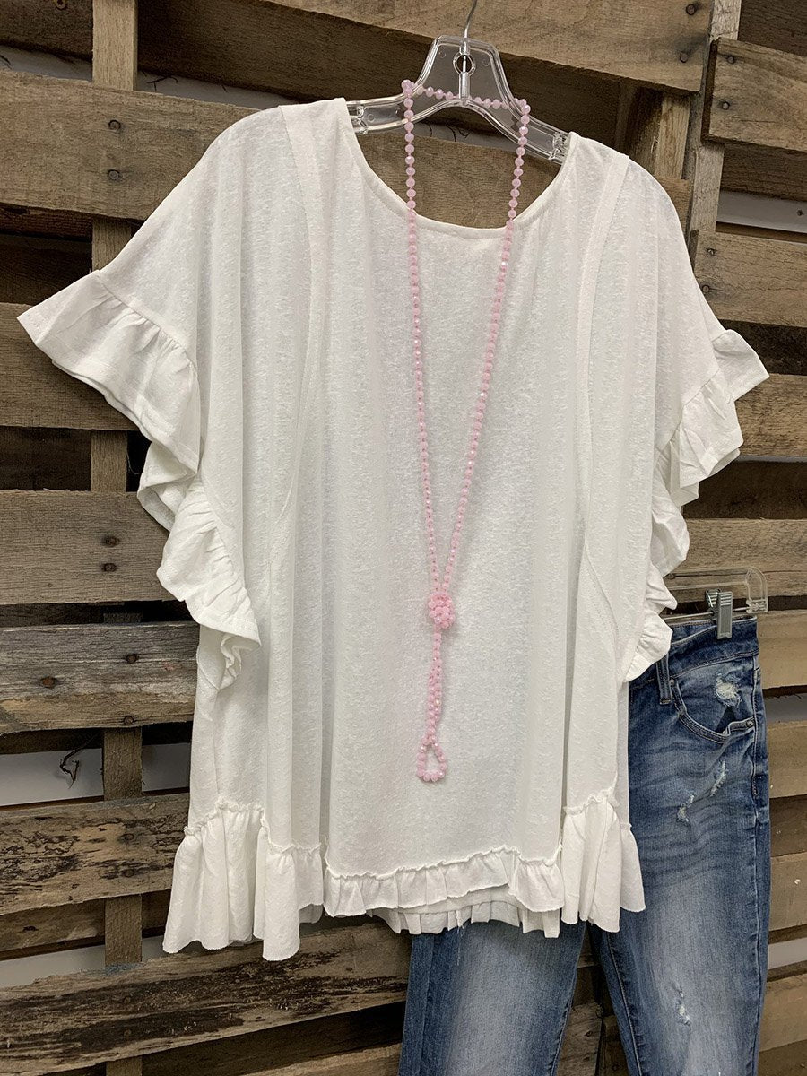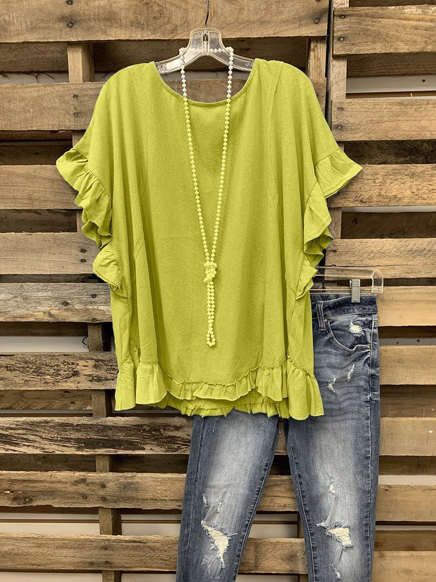 Sweet Top With Lotus Leaf Cuffs