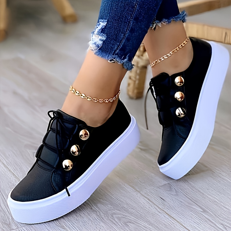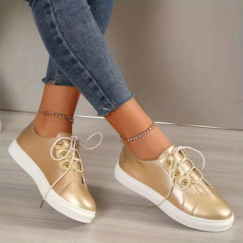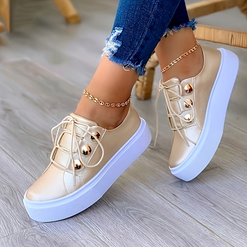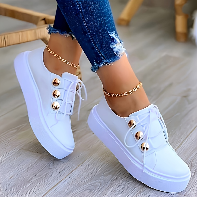 Women's Casual Sneakers, Lace Up Low Top Plain Toe Lightweight Shoes