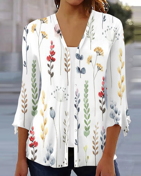 Women's Flower Print Loose Top Casual Cardigan