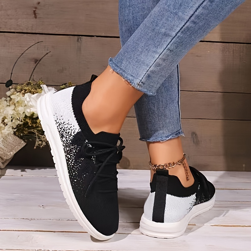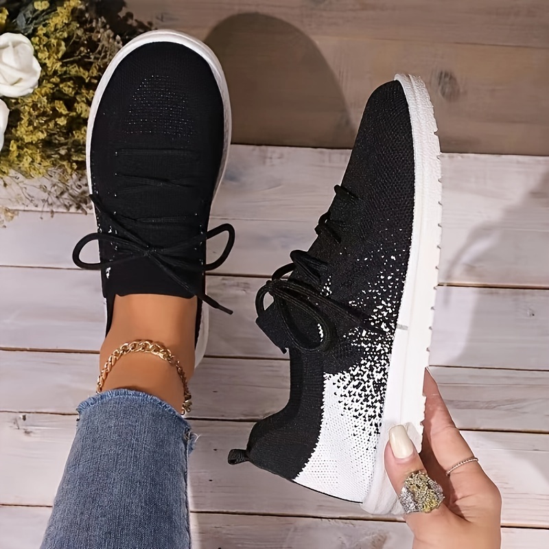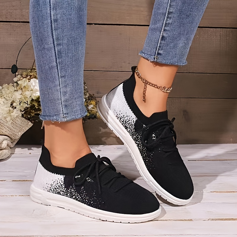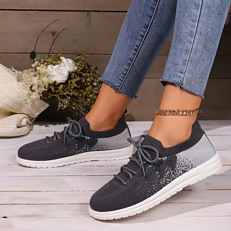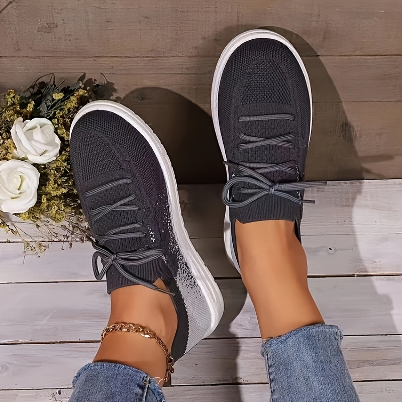 Women's Knitted Walking Sneakers, Breathable Lace Up Low Top Trainers, Casual Lightweight Sports Shoes
