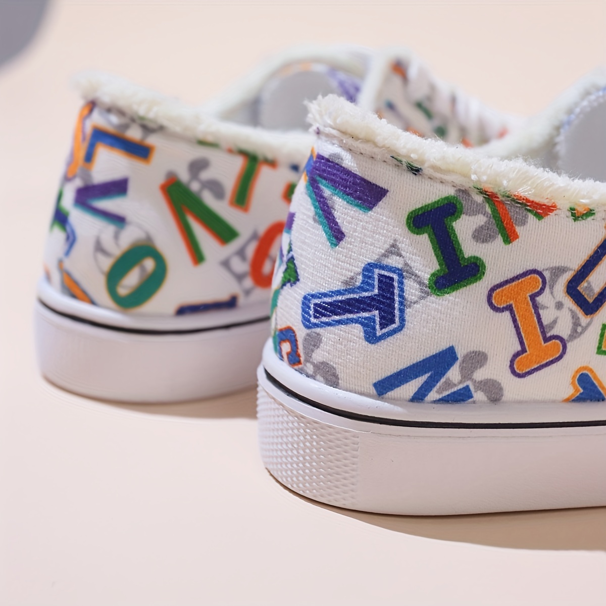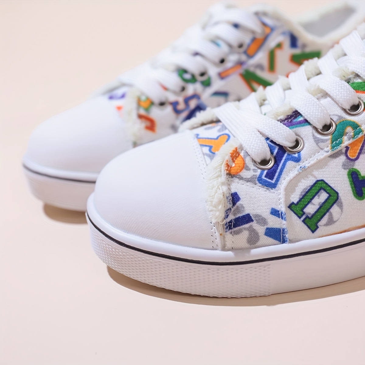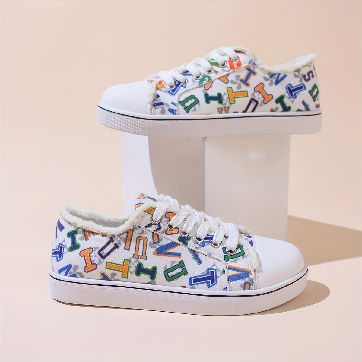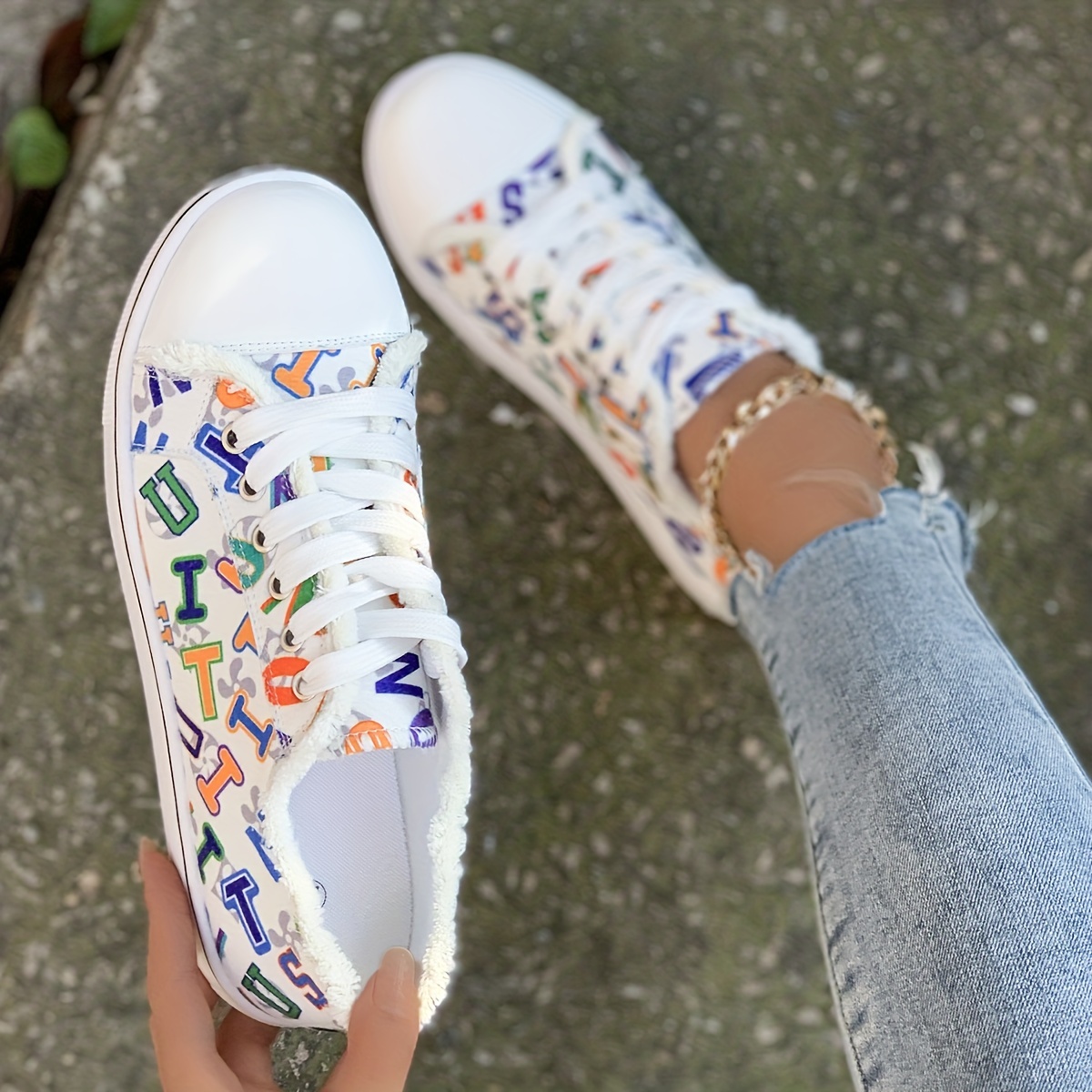 Women's Letter Graphic Canvas Sneakers, Casual Round Toe Low Top Skate Shoes, Versatile Flat Walking Trainers